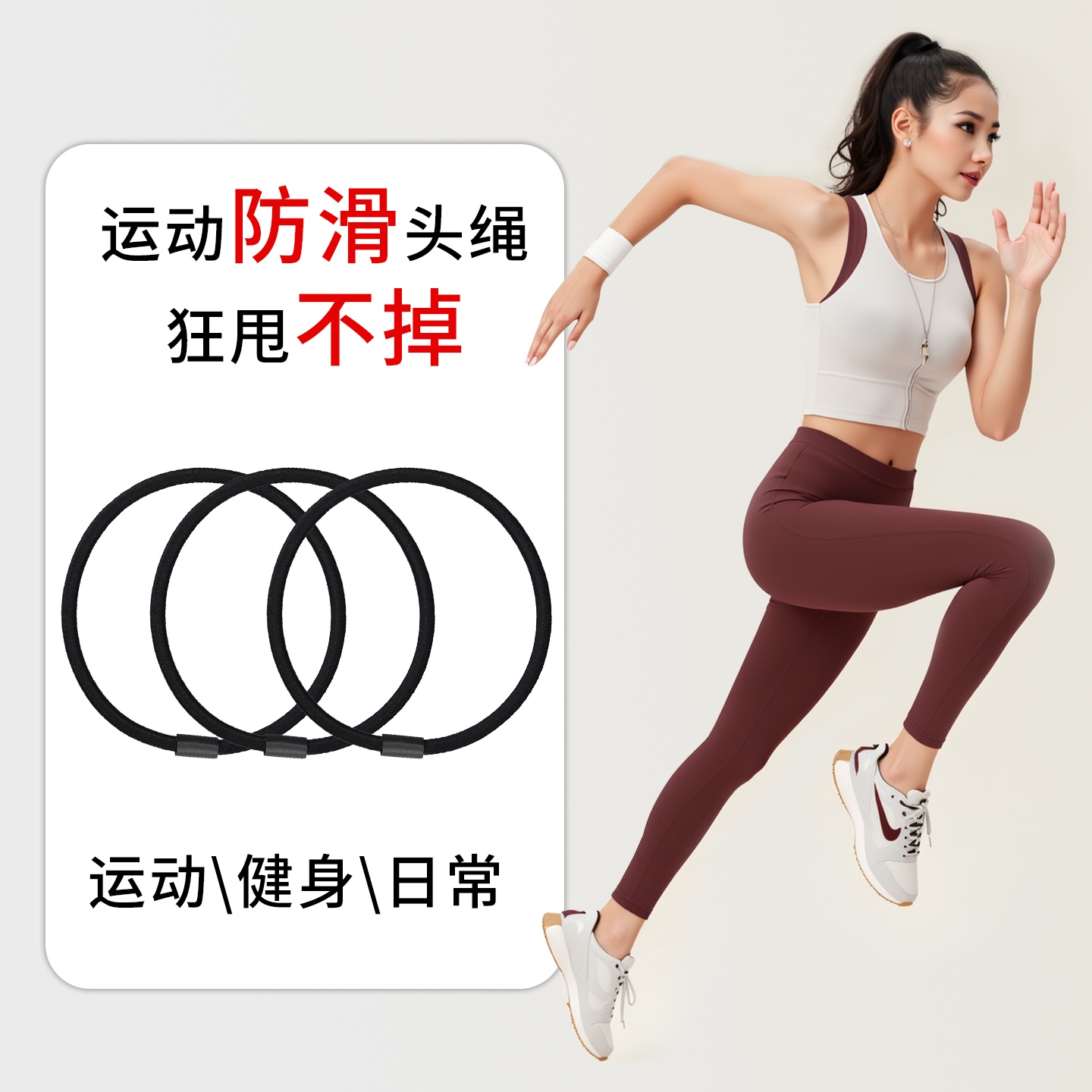 隐形发圈头绳女成人运动高马尾发绳女士扎头皮筋黑色高弹力橡皮筋