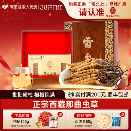 雷允上西藏那曲冬虫夏草甲级礼盒七克野生根根饱满滋补养生热虫草