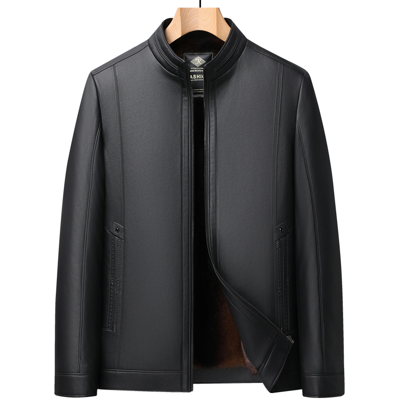 啄木鸟中老年人男士皮夹克加绒加厚款冬季皮毛一体爸爸装皮衣外套