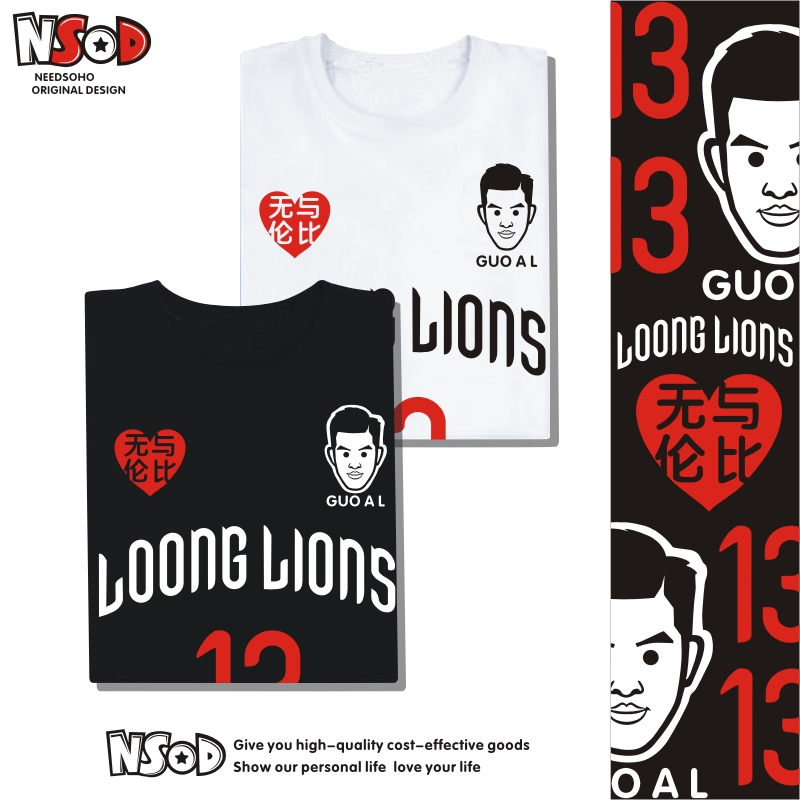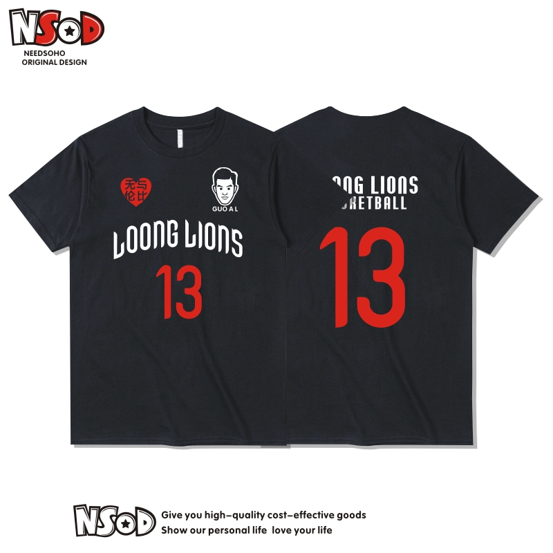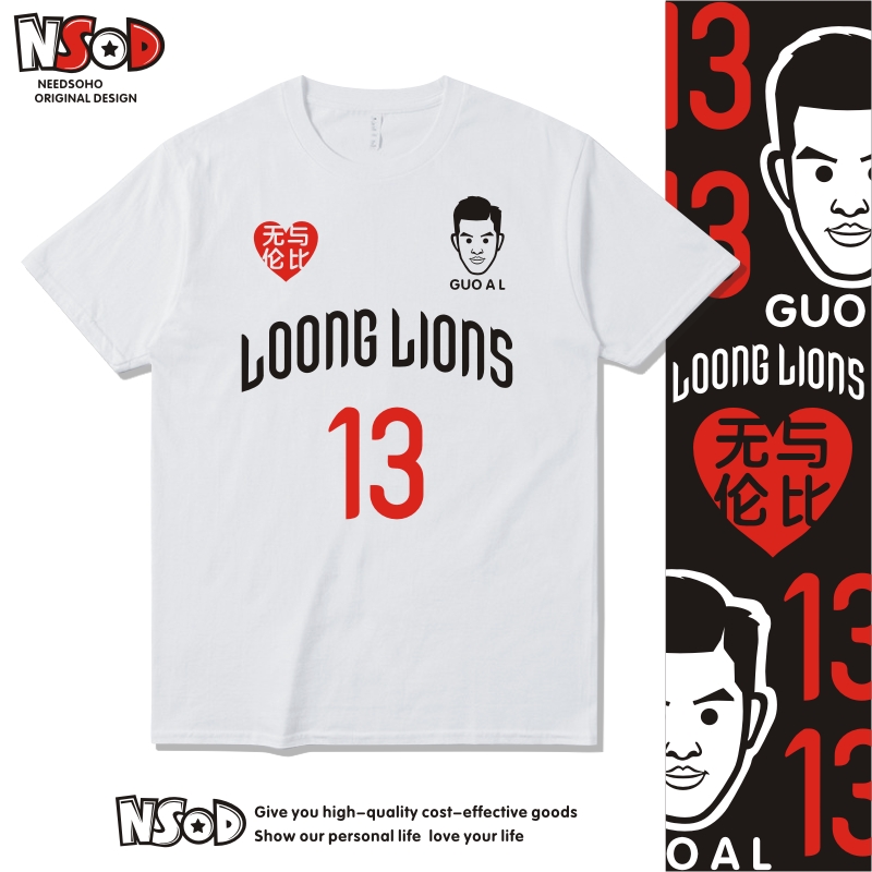 广州龙狮郭艾伦T恤短袖篮球衣服13号崔永熙8号球星卡通cba男篮新