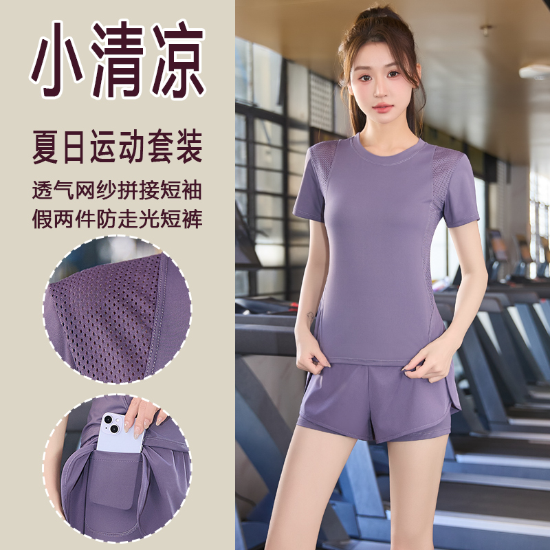 瑜伽服套装女夏季薄款速干健身短裤运动上衣跑步运动套装女晨跑服