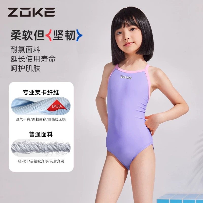 洲克儿童泳衣女童专业女孩比赛竞速连体三角泳衣zoke新款速干抗氯