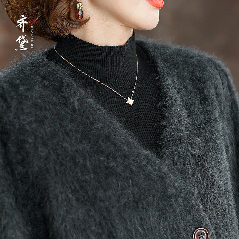 原创设计高支山羊绒针织衫女2025秋冬季新款洋气减龄妈妈羊毛外套