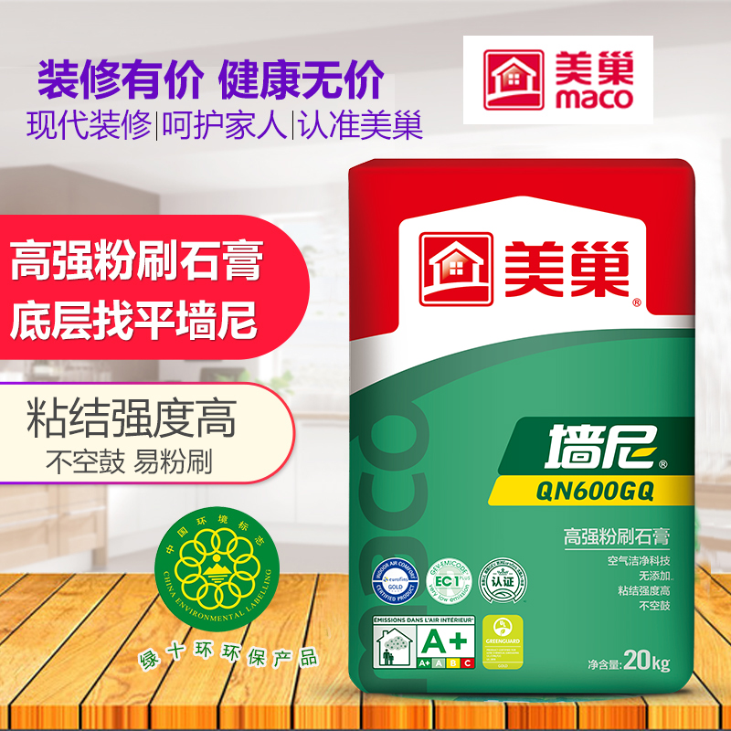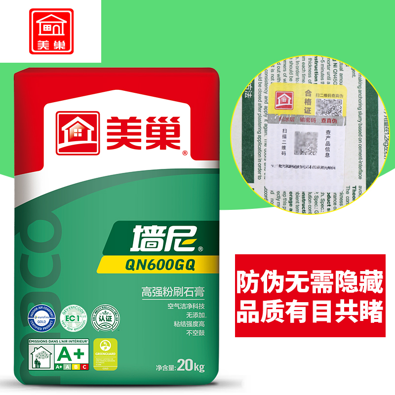 美巢腻子粉墙尼高强粉刷石膏底层QN600GQ 腻子内墙墙面找平20公斤