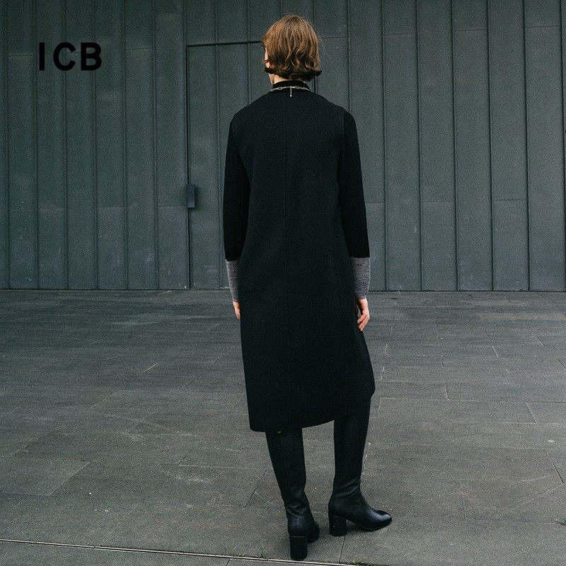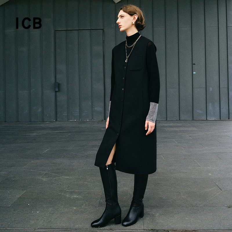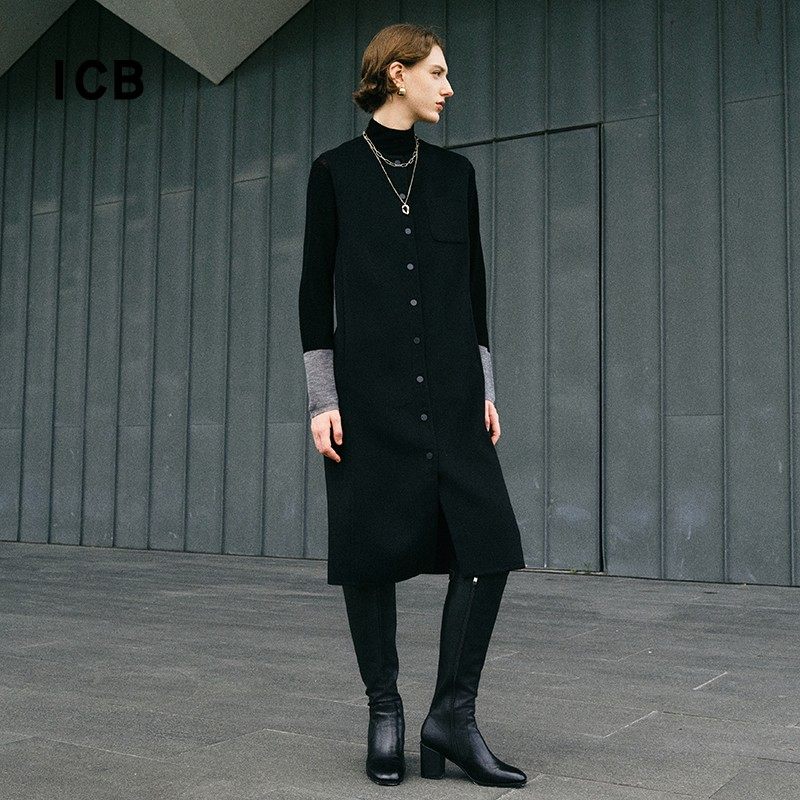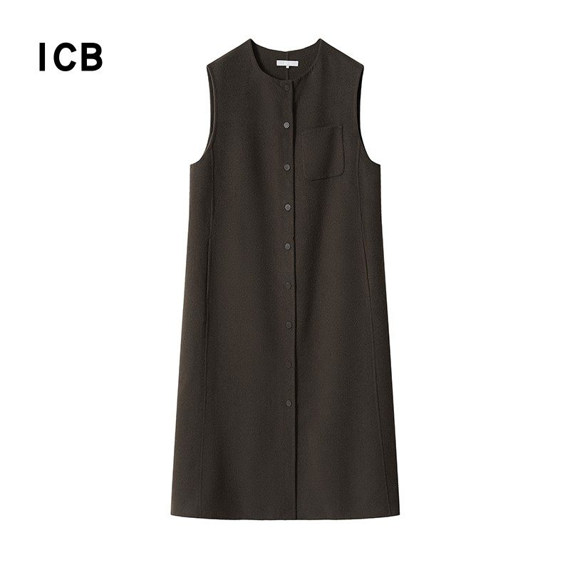 ICB日系春季通勤羊毛羊绒混纺无袖连衣裙直筒背心连身裙商场同款