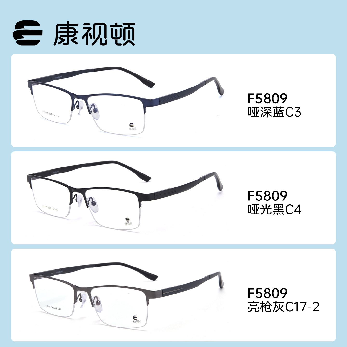 康视顿眼镜商务睿智半框职场精英眼镜近视光学镜框F5809