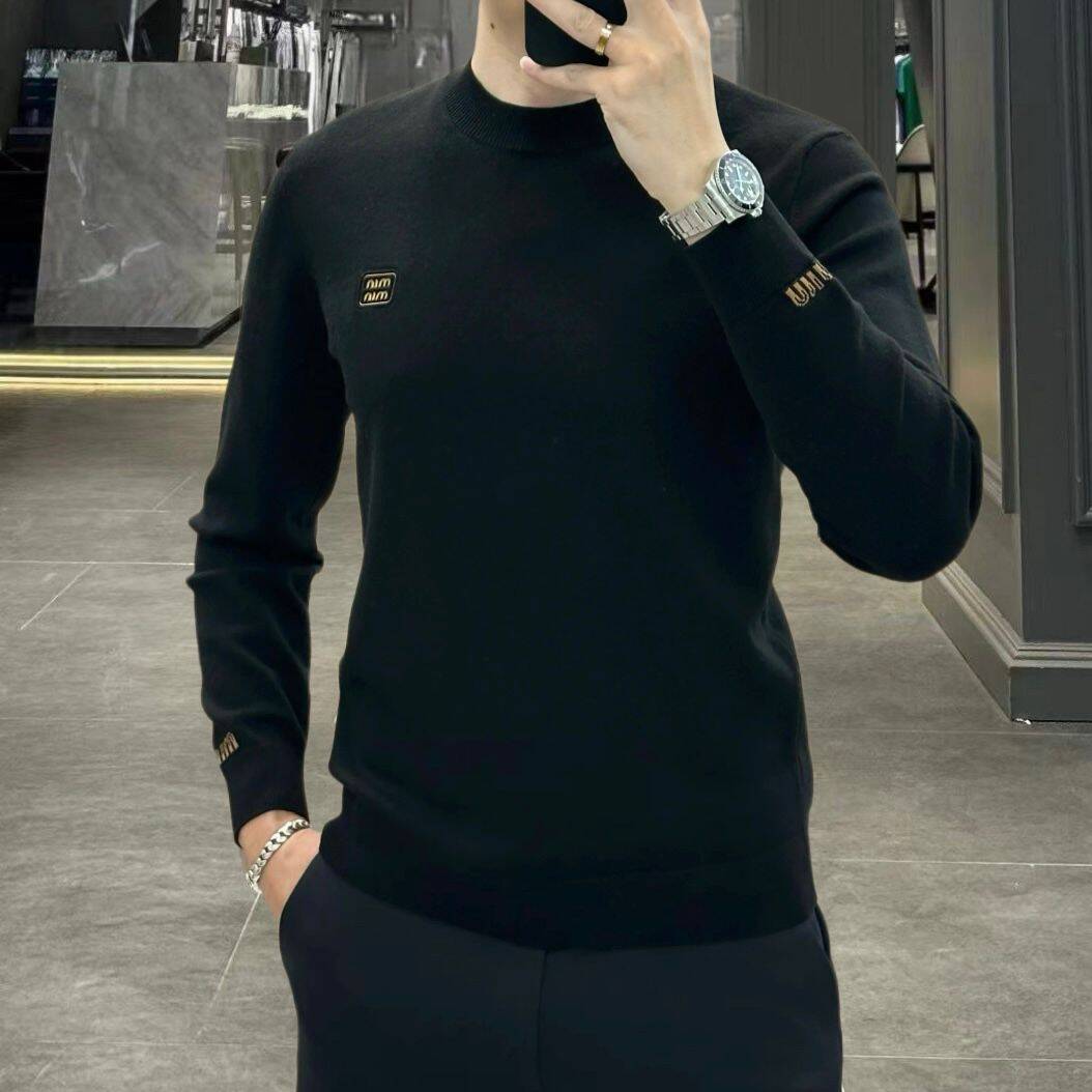 欧货高端秋冬季男士长袖毛衣圆领潮牌时尚羊毛打底针织衫休闲线衣