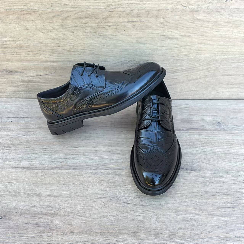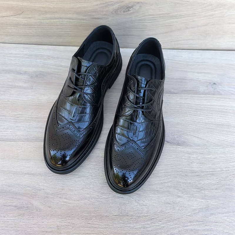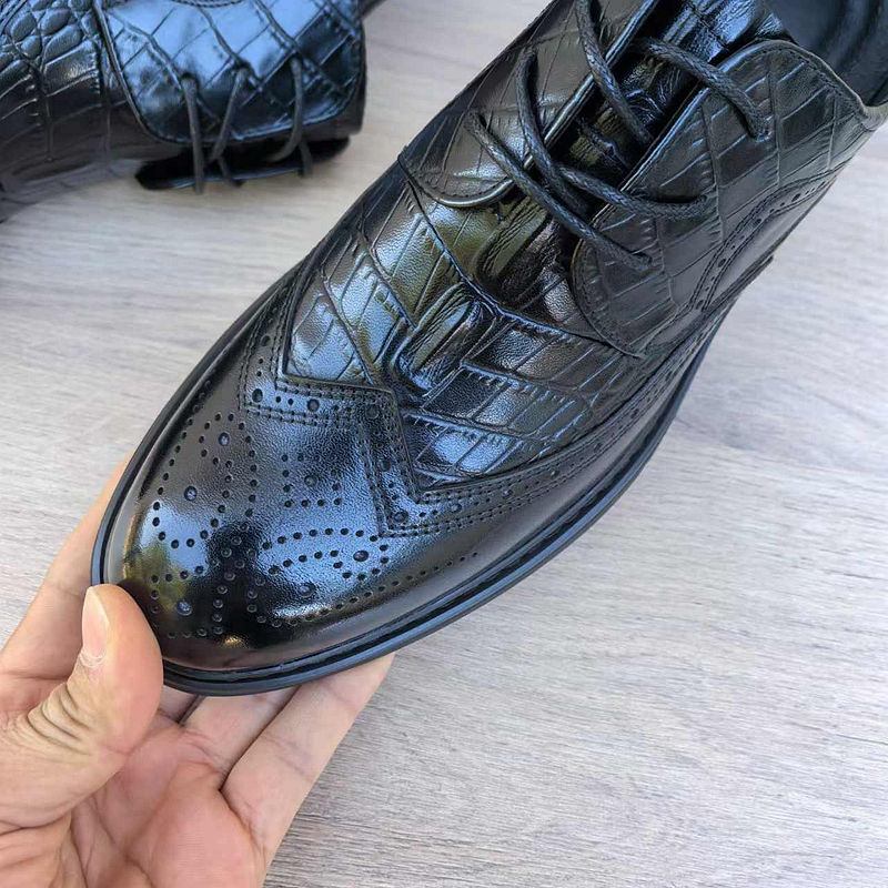 英伦布洛克皮鞋男真皮鳄鱼纹圆头