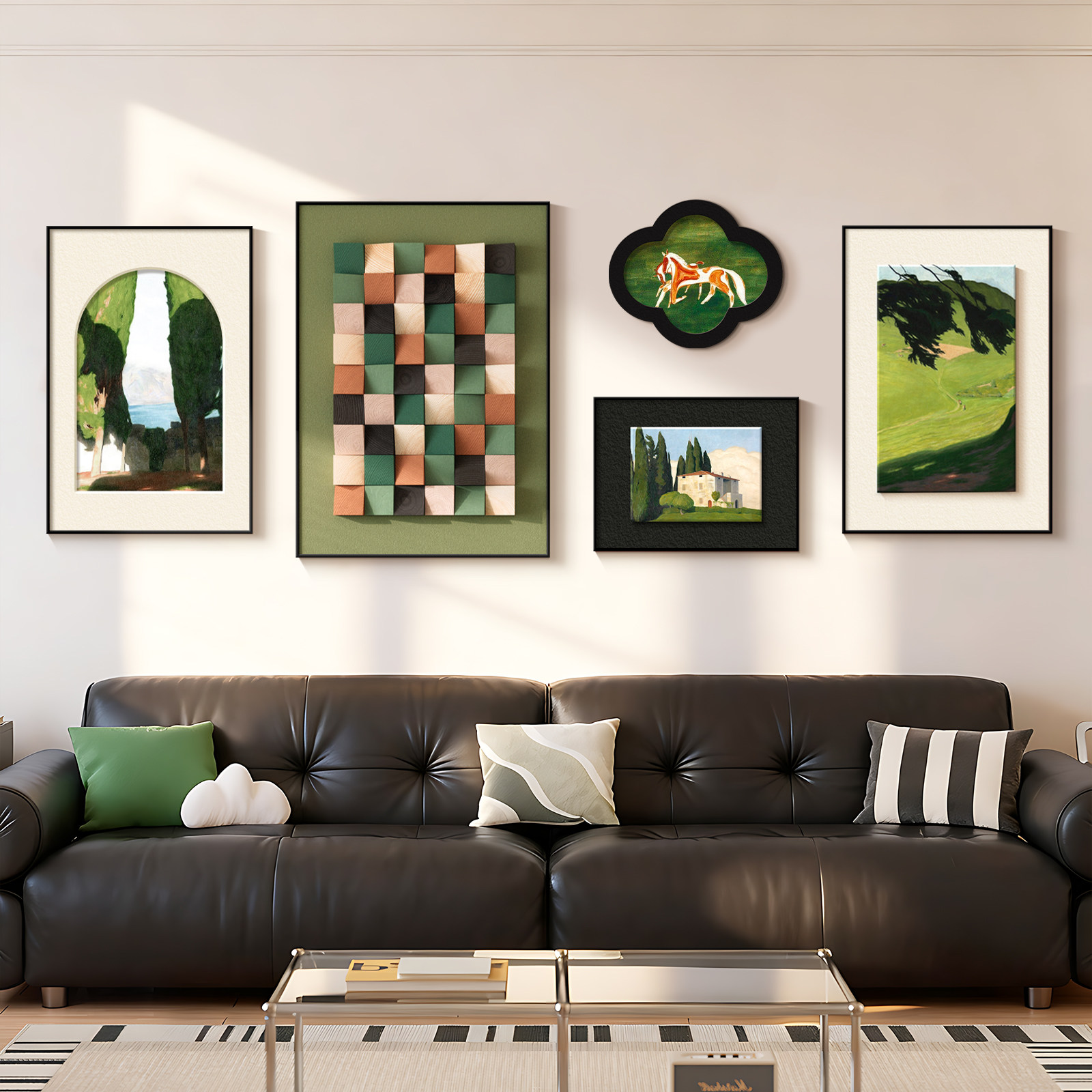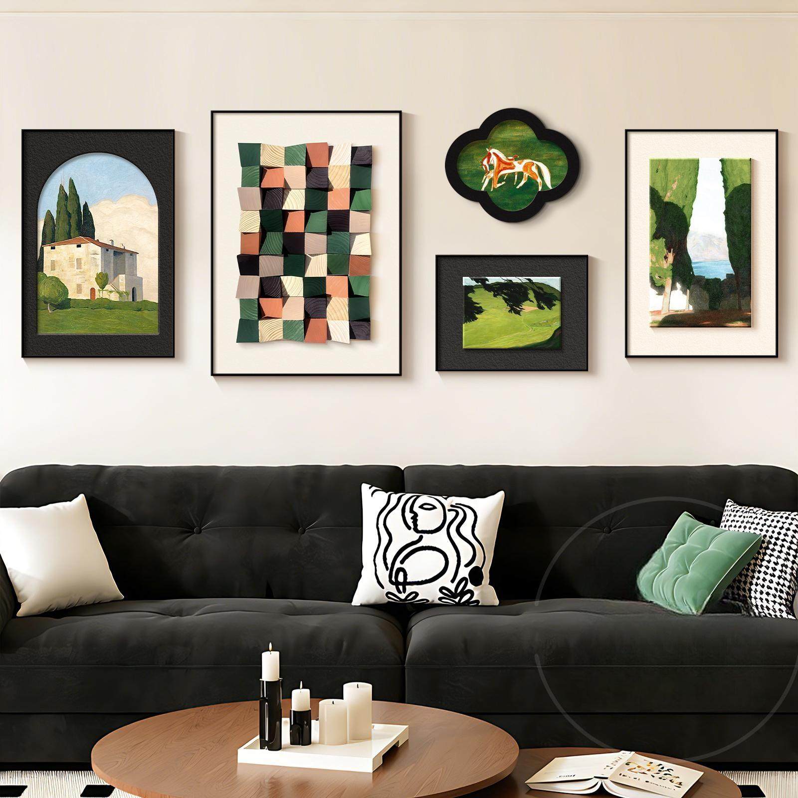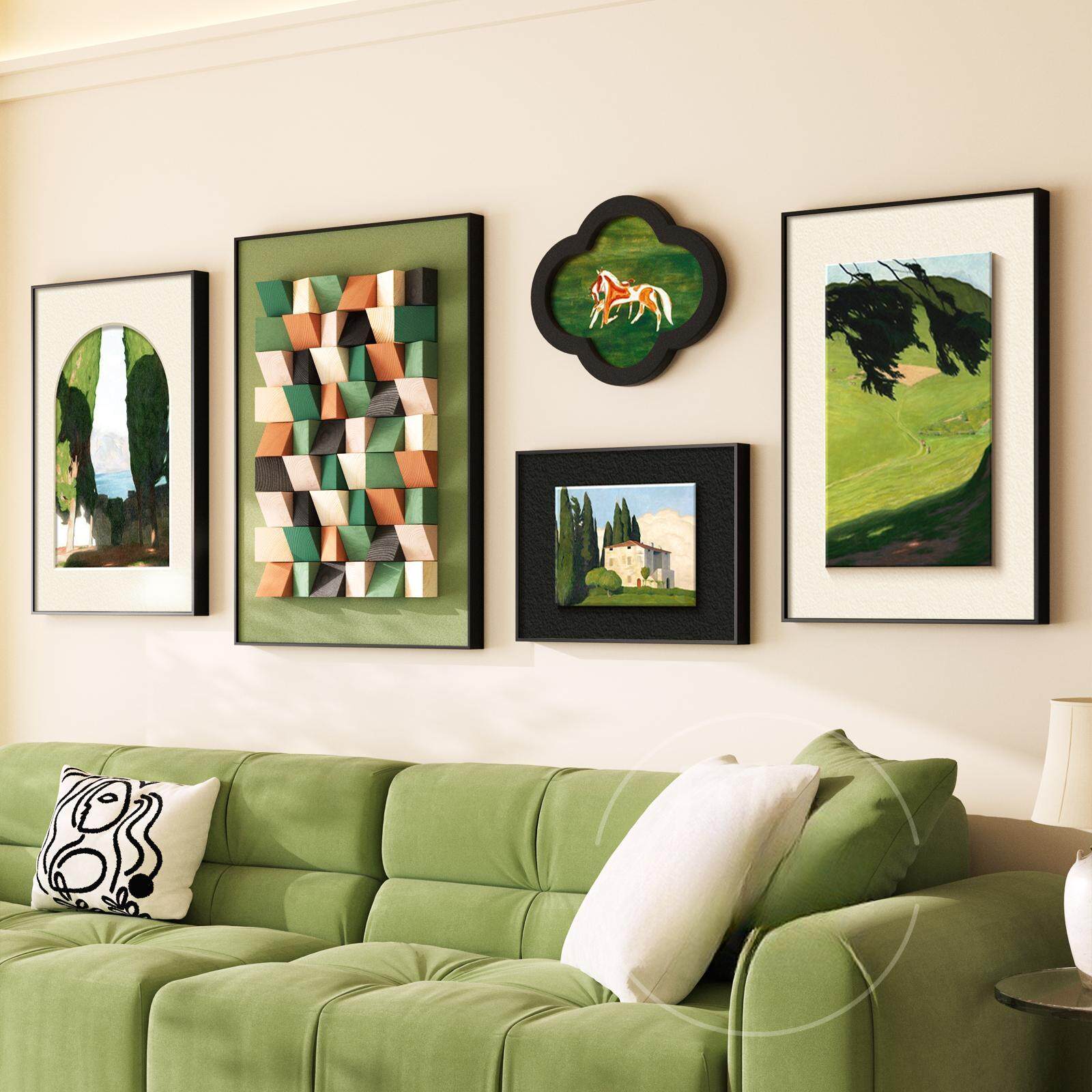 法式复古客厅装饰画高级感沙发背景墙挂画小众绿色风景组合墙壁画