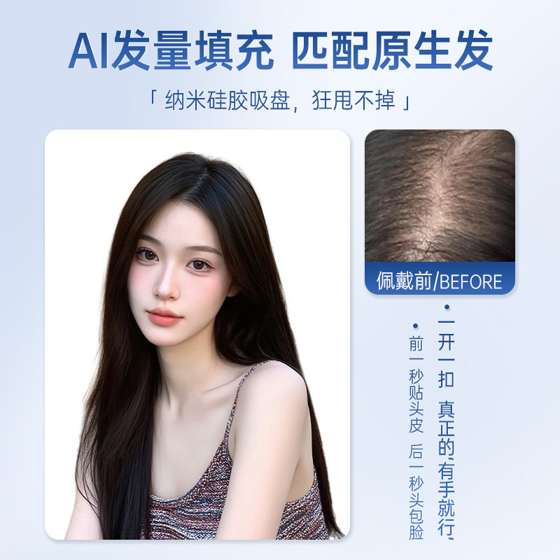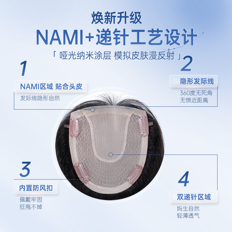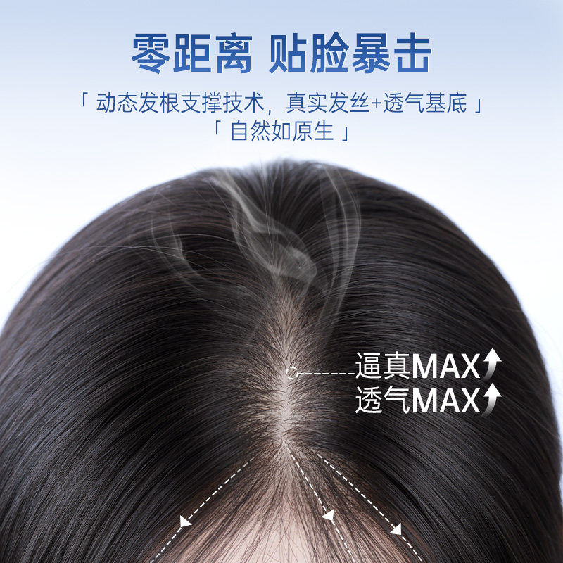 真我假发片女NAMI生物膜递针全真发头顶补发片蓬松遮白发轻薄无痕