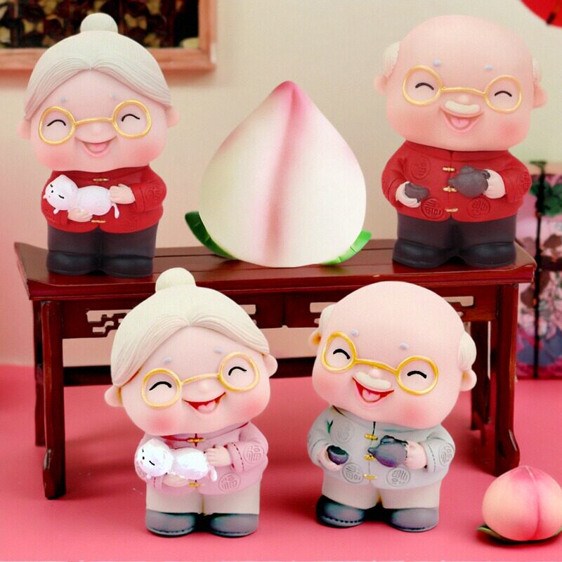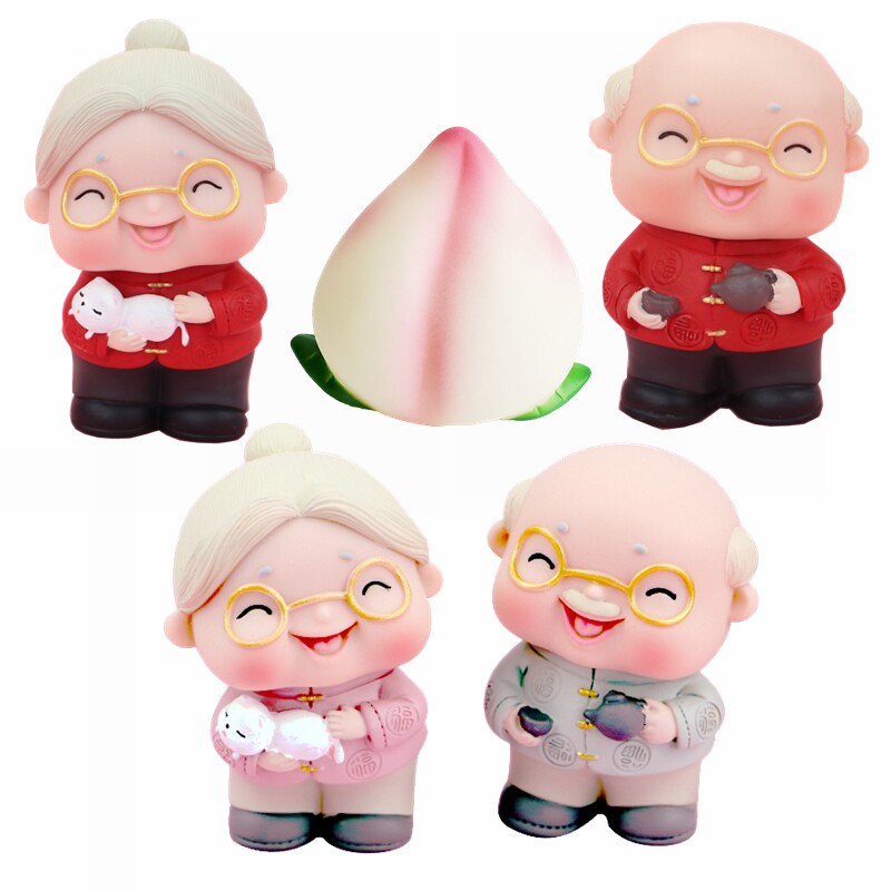 热卖老花镜爷爷奶奶祝寿蛋糕装饰摆件寿星公婆老头老太寿桃插件