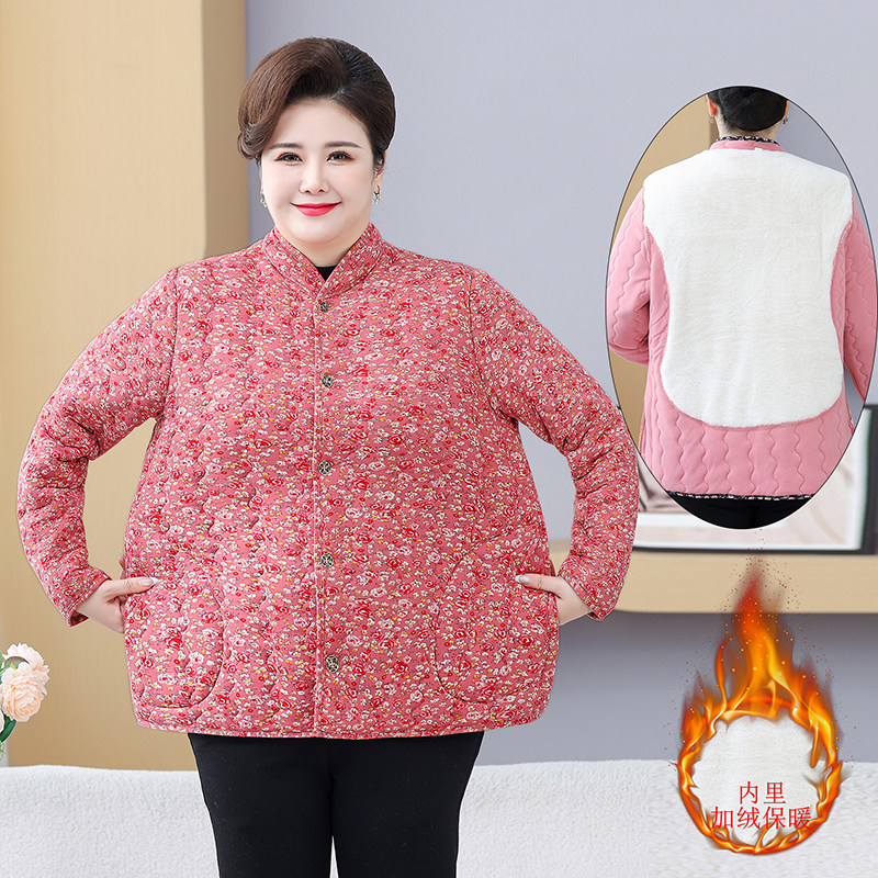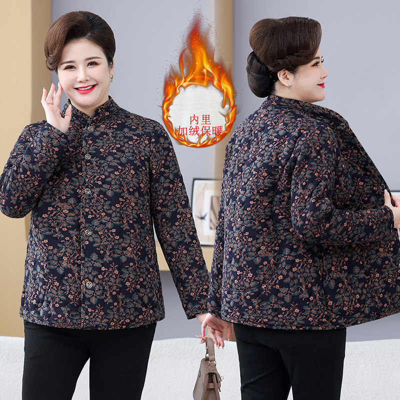 七色玉米妈妈装加绒加厚碎花棉衣中老年女保暖短款外套奶奶棉袄