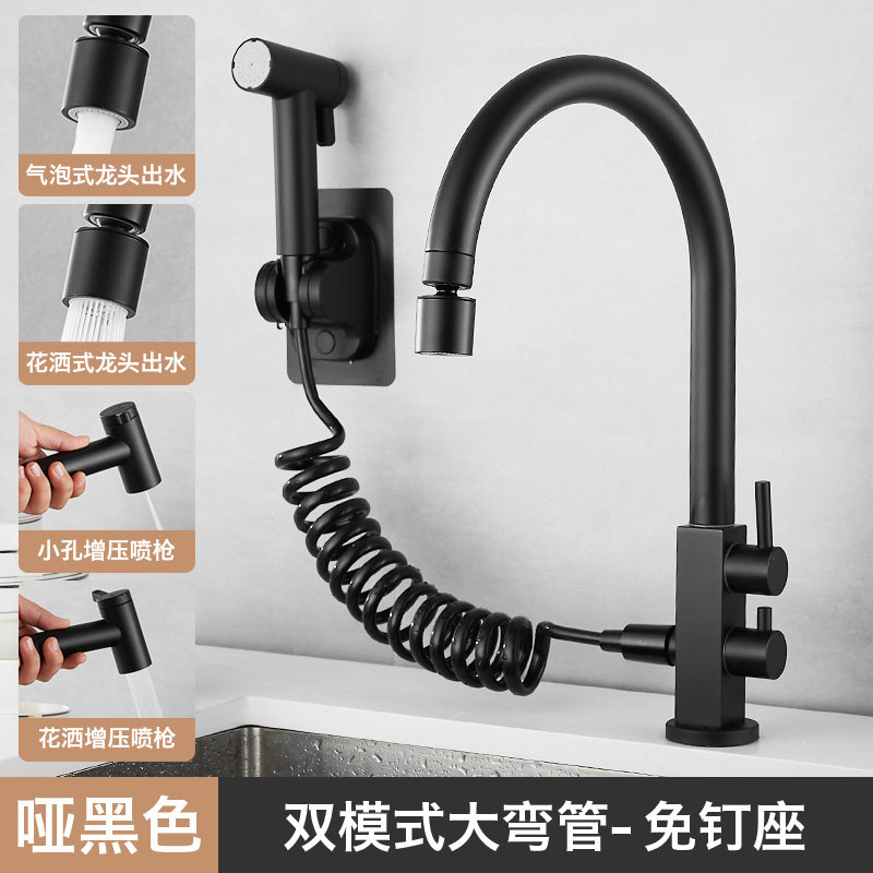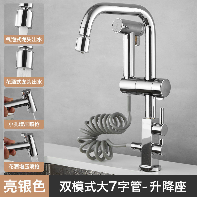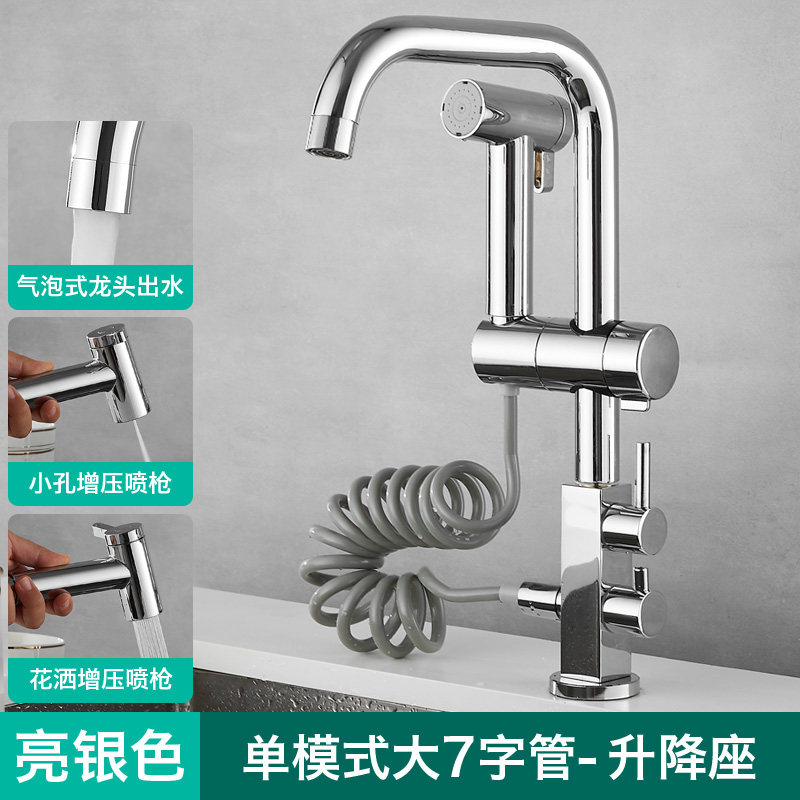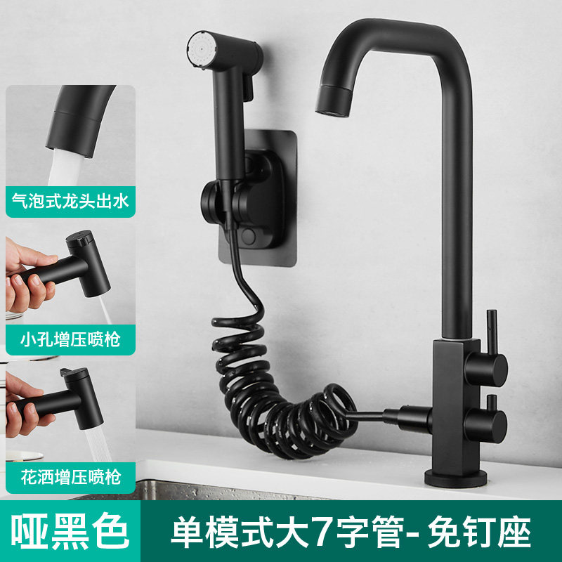 单冷厨房水龙头阳台洗衣池面盆立式带喷枪多功能一分二可旋转龙头