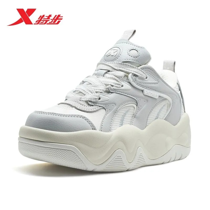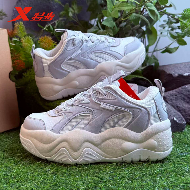特步吐司鞋女休闲板鞋2025冬季新款轻便运动街头板鞋975418310053