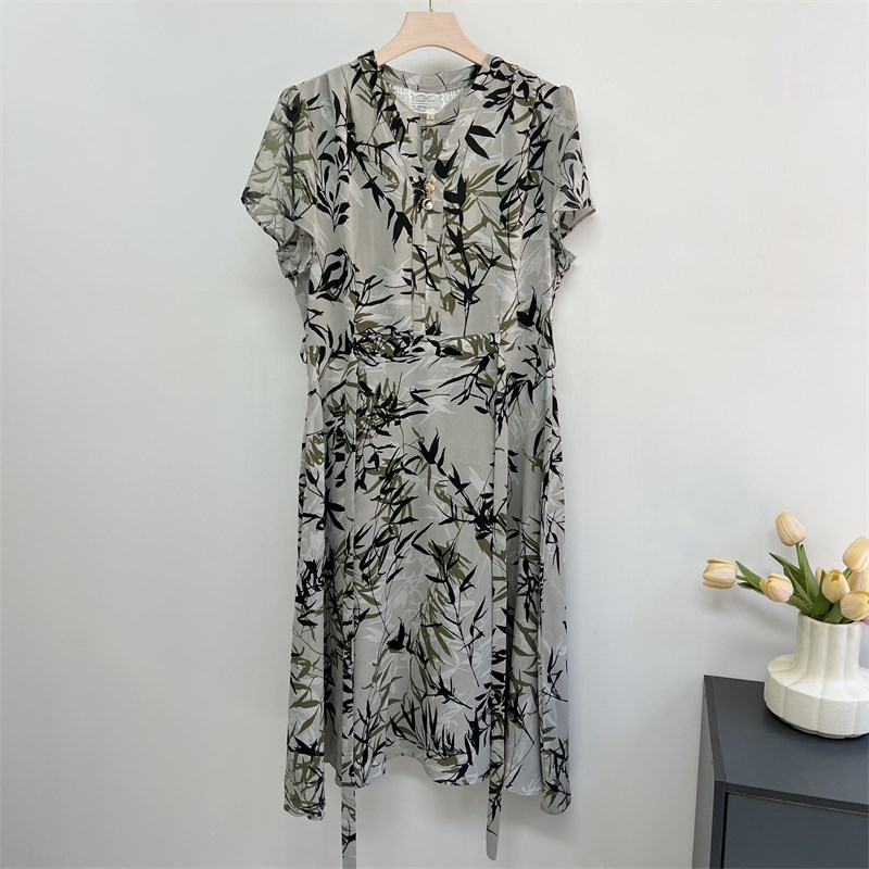 妈妈夏装洋气短袖连衣裙2024新款中老年女装夏季显瘦雪纺薄款裙子