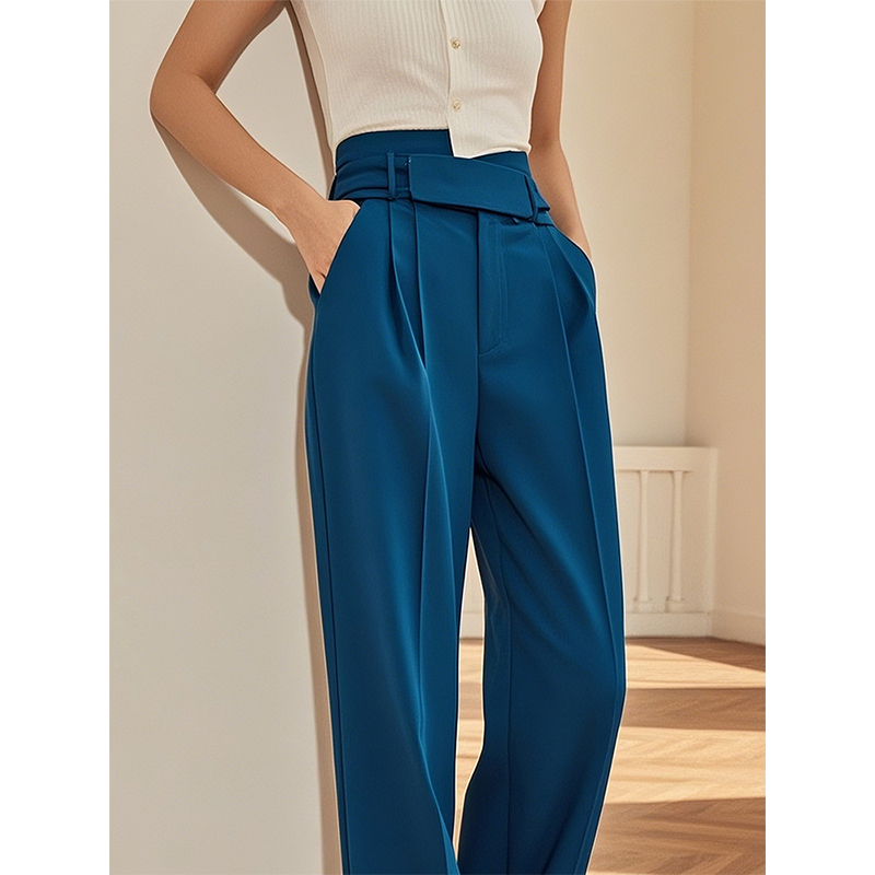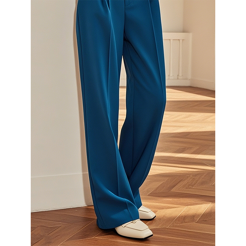 复古孔雀蓝西装阔腿裤女2025年夏季新款高腰垂感宽松直筒休闲裤子