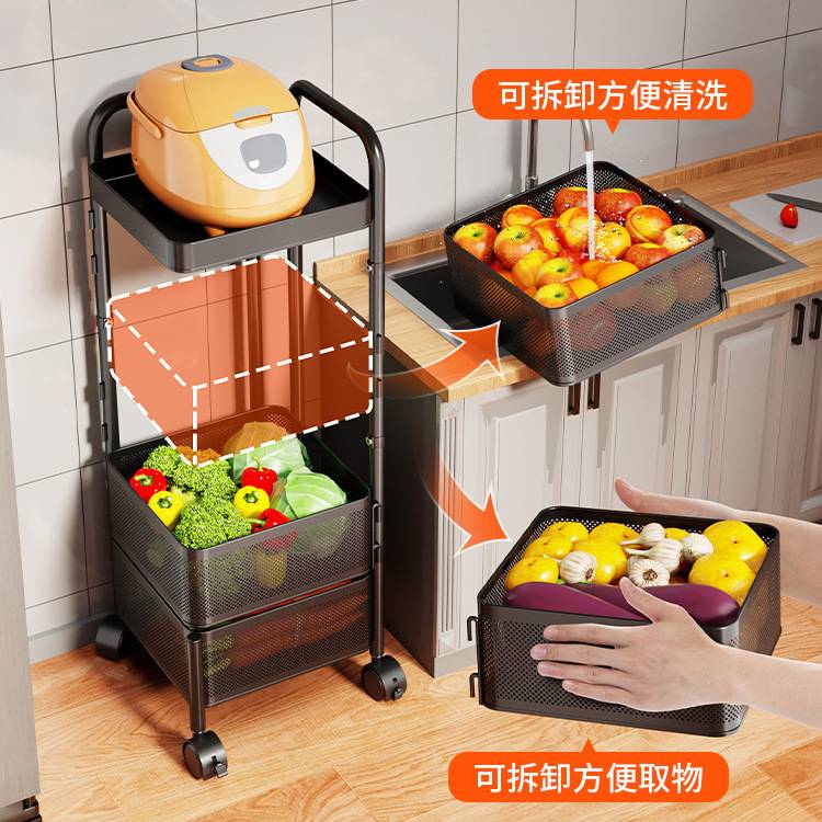 厨房旋转置物架方形水果蔬菜架欧式落地多层旋转收纳架客厅储物架