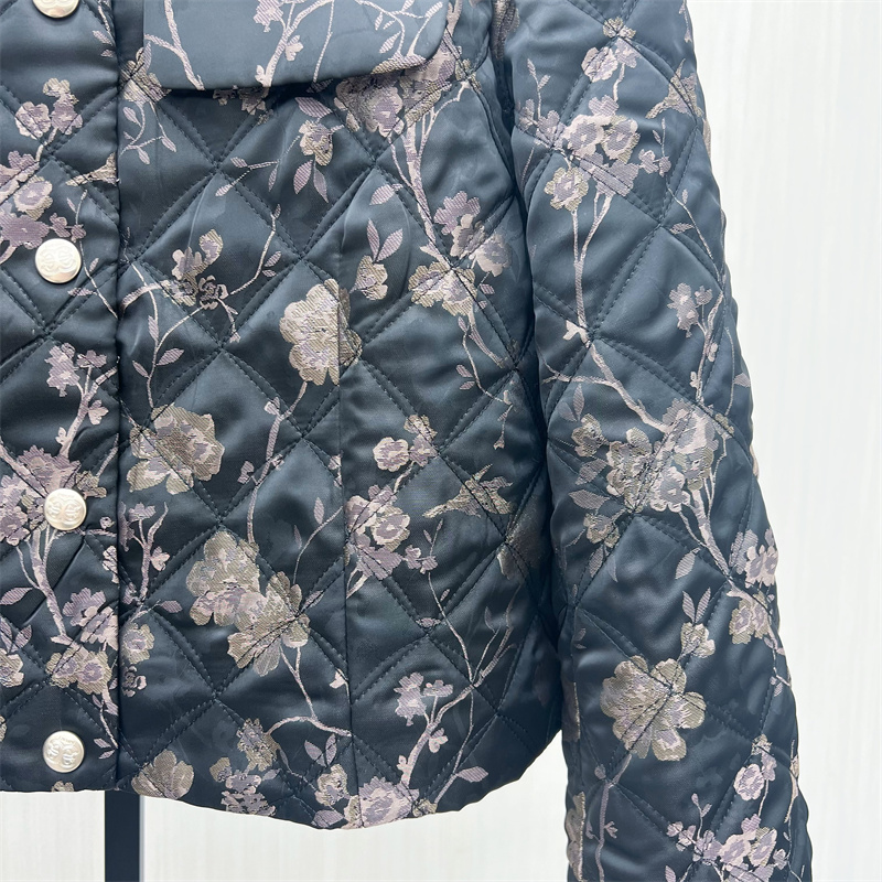 恩●2025冬季新品 新中式碎花外套女气质通勤短款国风夹棉外套138