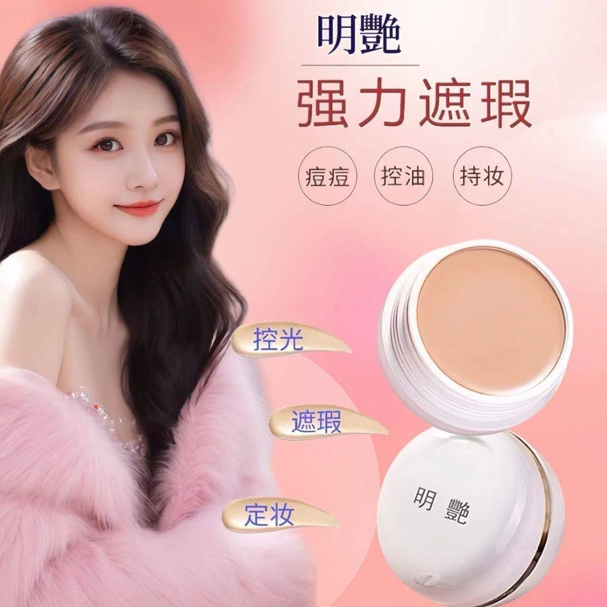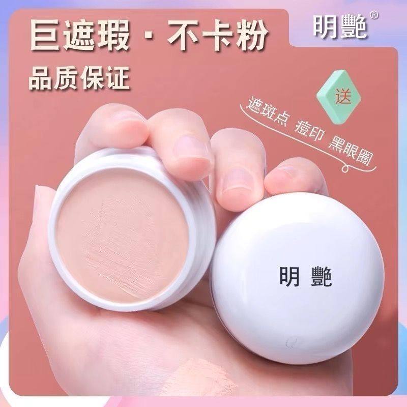 明艳遮瑕膏官方旗舰店防水粉底膏明艳130遮瑕膏黑眼圈红血丝140
