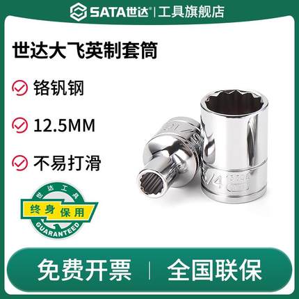 SATA世达大飞英制十二角套筒12.5mm花键工具花角套筒头重型梅花套