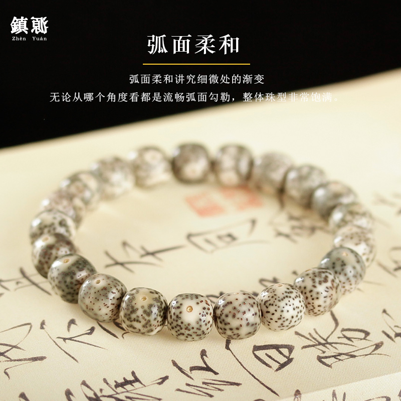 海南原生态石玉料星月菩提手串翡翠绿阴皮高密男女单圈佛珠手串链