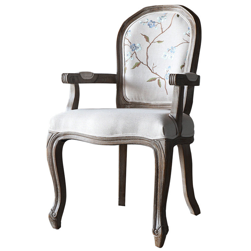 法式餐椅仿古欧式实木做旧软包靠背椅休闲扶手椅酒店设计师椅子