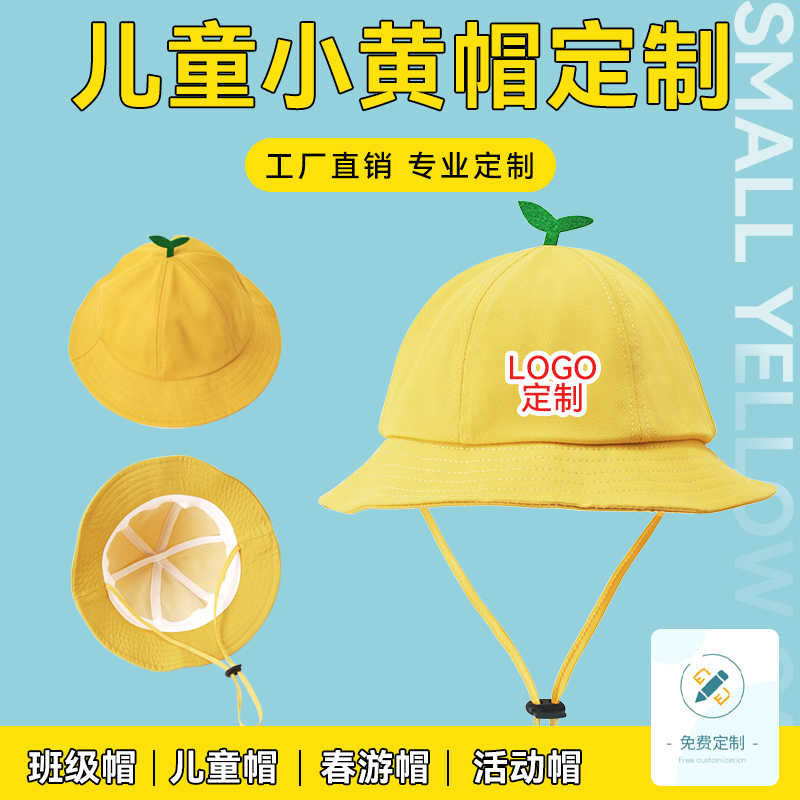 定制幼儿园小黄帽儿童渔夫帽日系小丸子小学生帽子logo定做印字