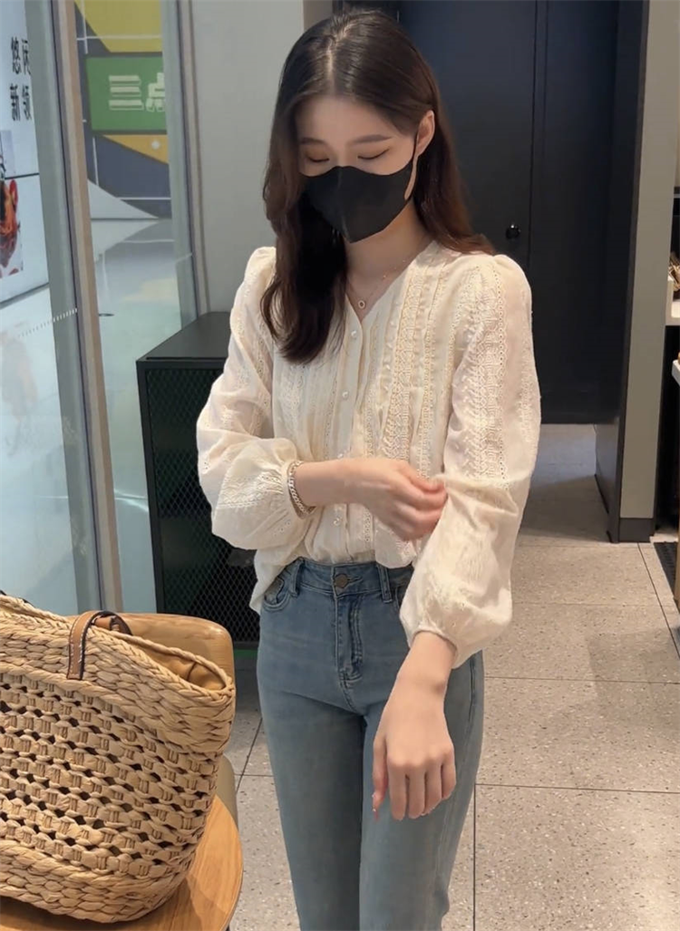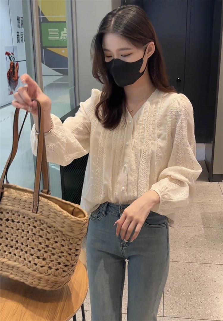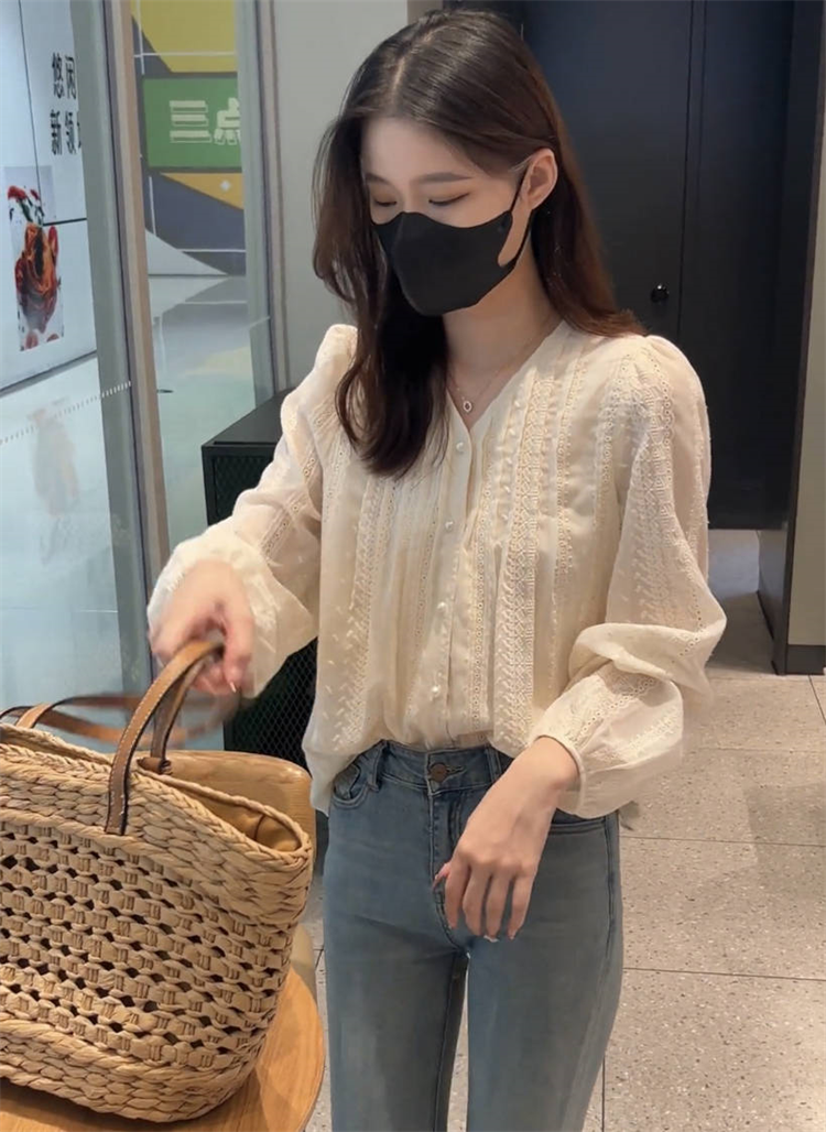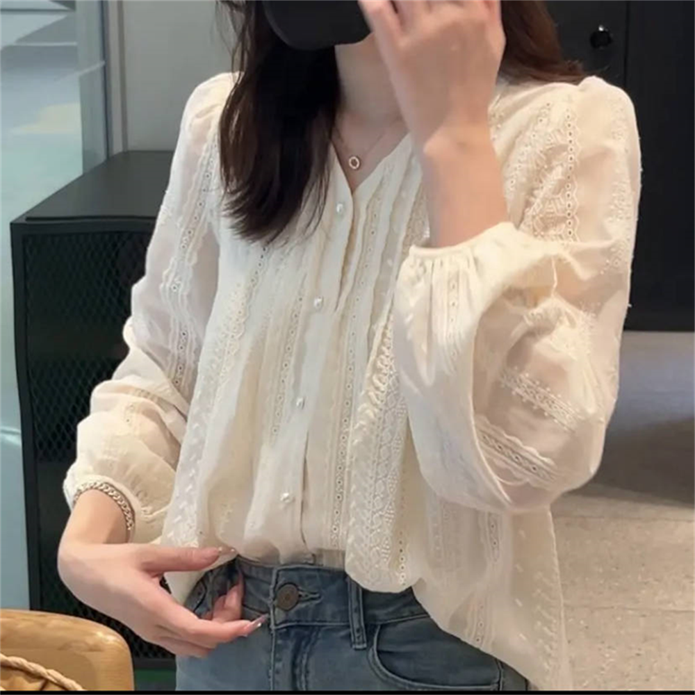 设计感小众蕾丝长袖衬衫女2025秋季新款刺绣小衫打底衫法式上衣