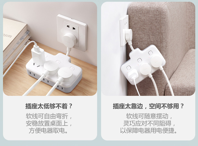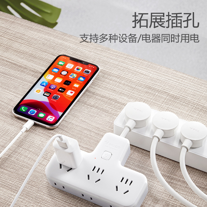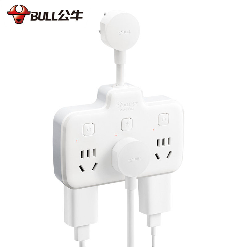 公牛插头转换器带线柔性家用插座面板一转三拖六多用拓展插排插板