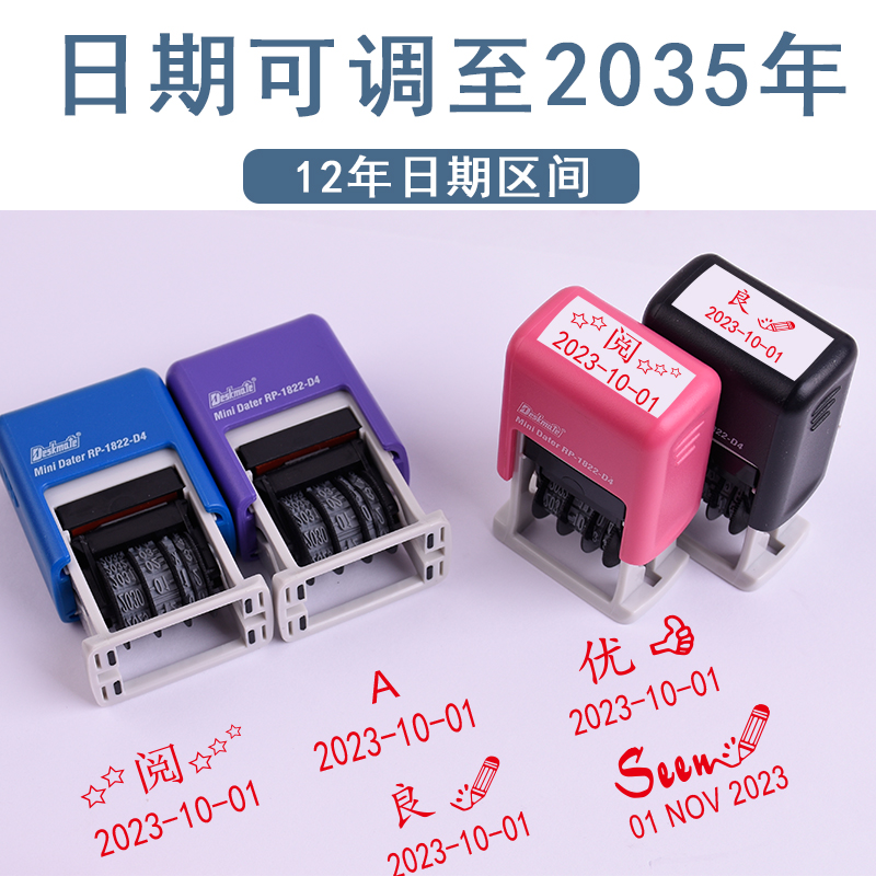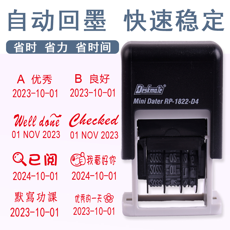 教师评语印章可调日期印章德士美日期教学印章批改作业可调年月日可定制中英文内容日期自动翻转回墨章印