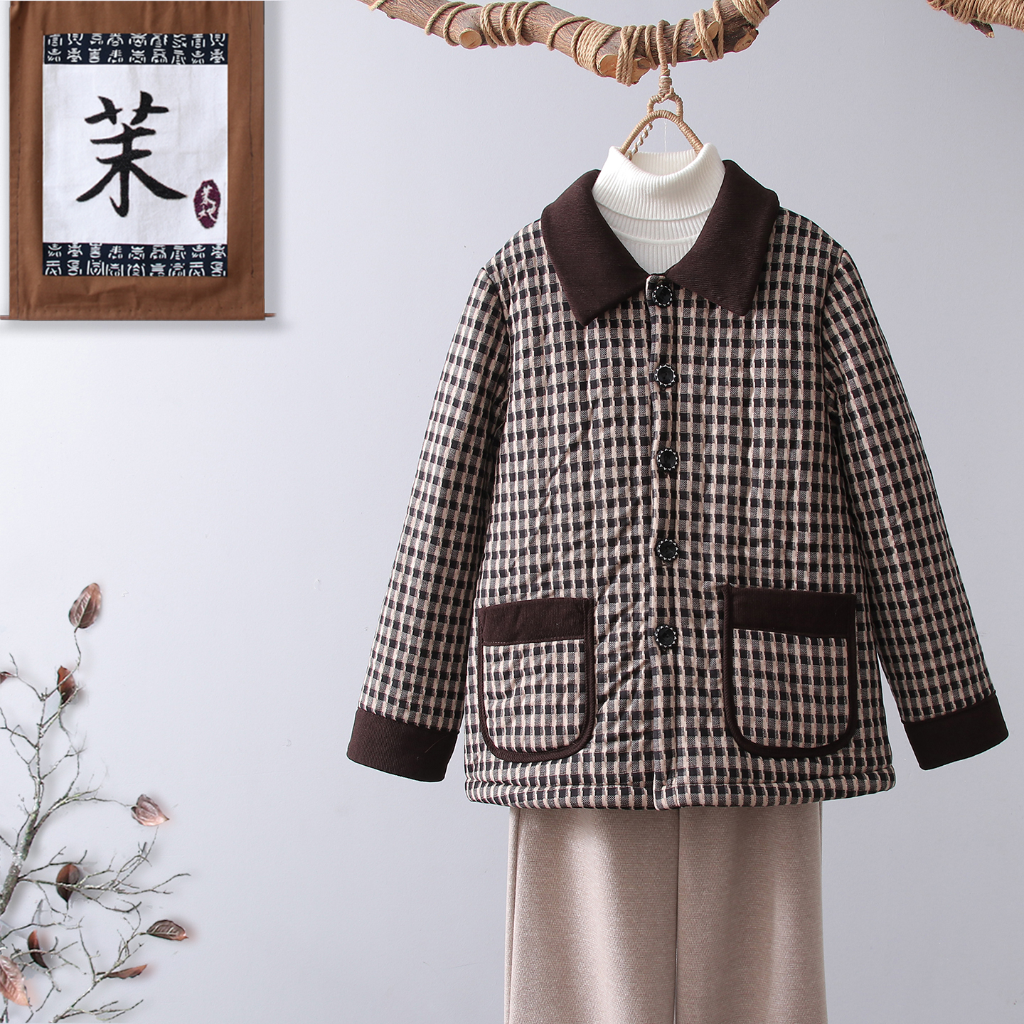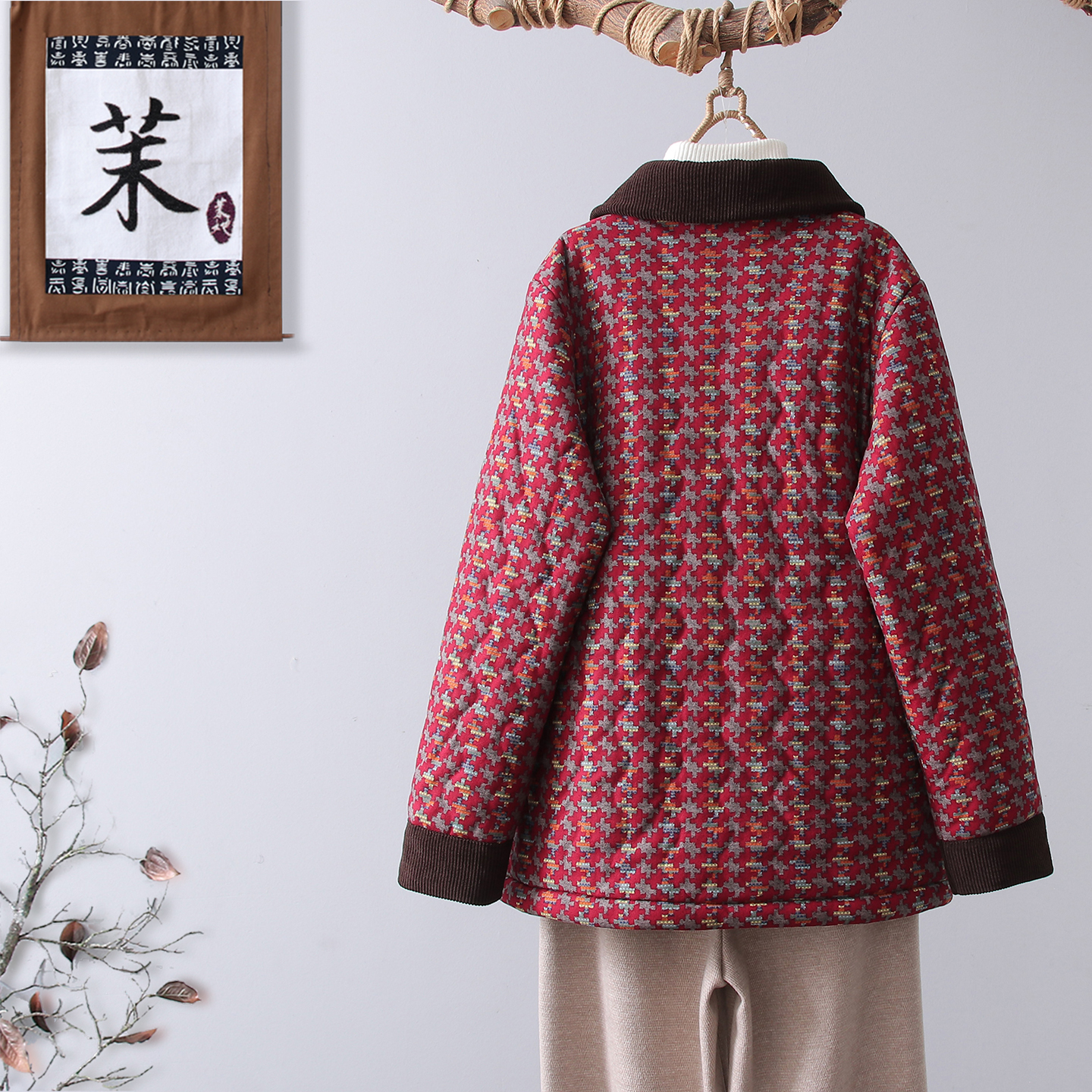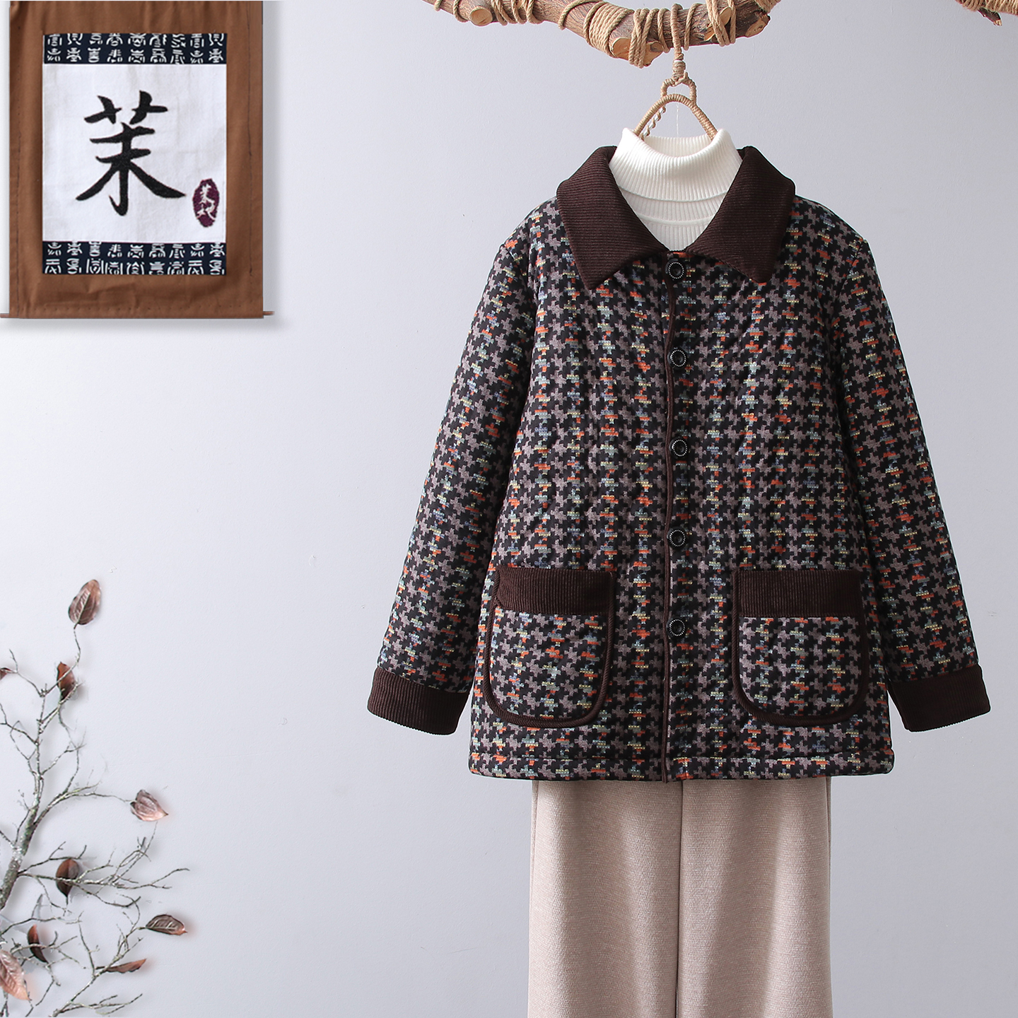 奶奶秋冬棉衣女加绒外套60岁70中老年人洋气格子棉服妈妈保暖棉袄