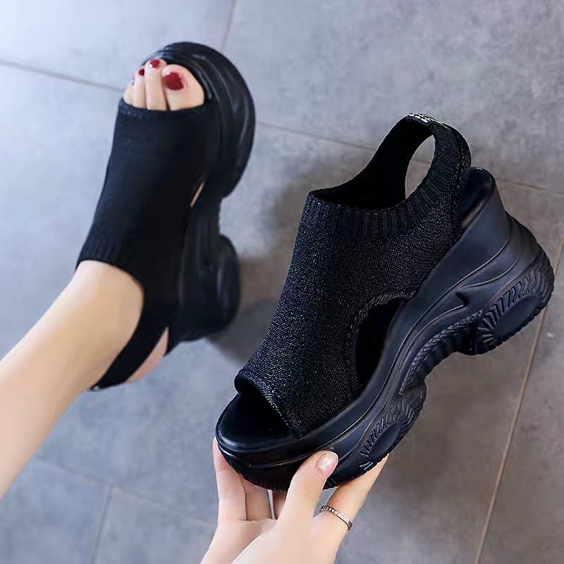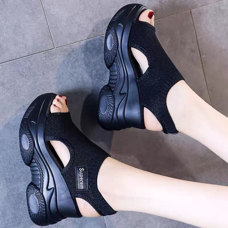 网红运动女时装凉鞋仙女风夏季2022新款厚底高跟内增高松糕罗马鞋