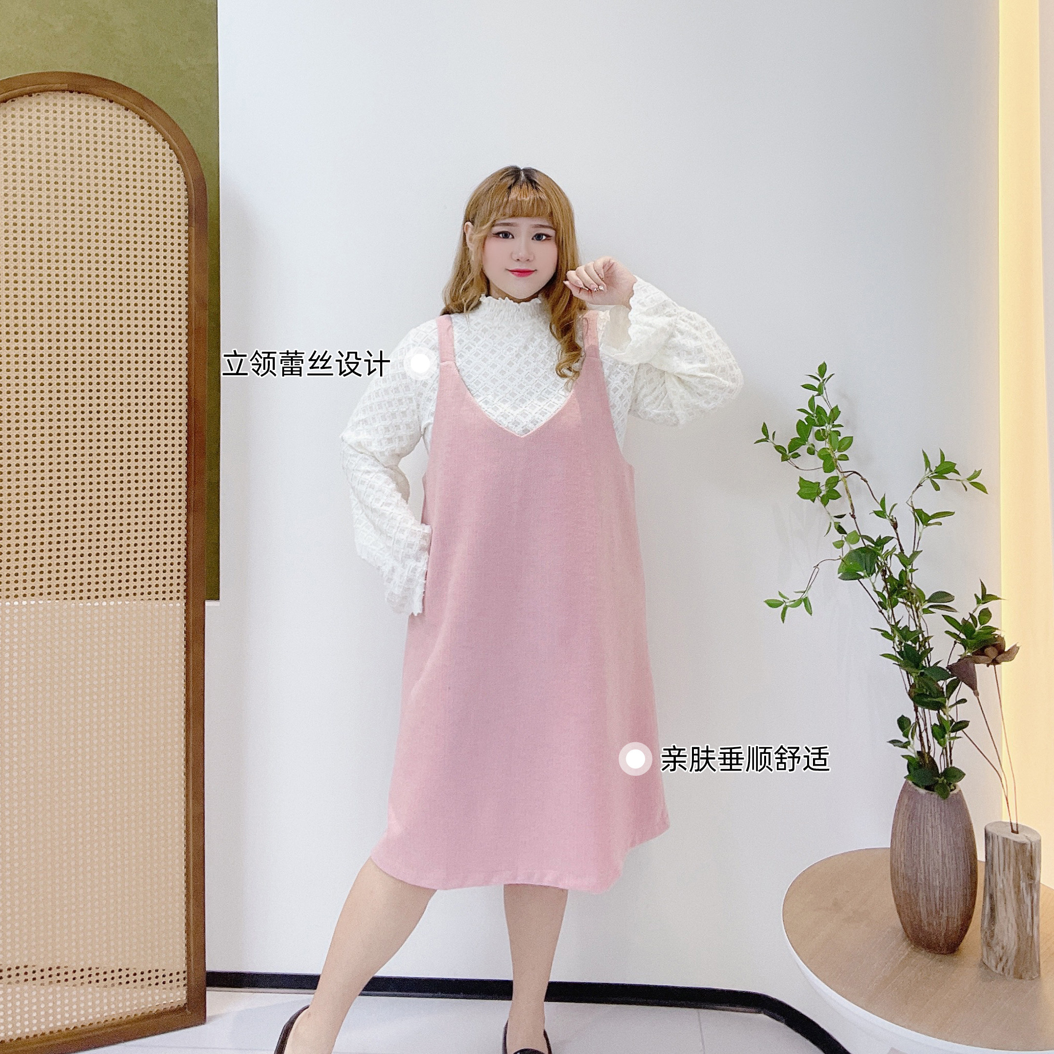 240斤胖莹莹大码女装甜妹小香轻奢通勤蕾丝打底衫磨绒感背心裙
