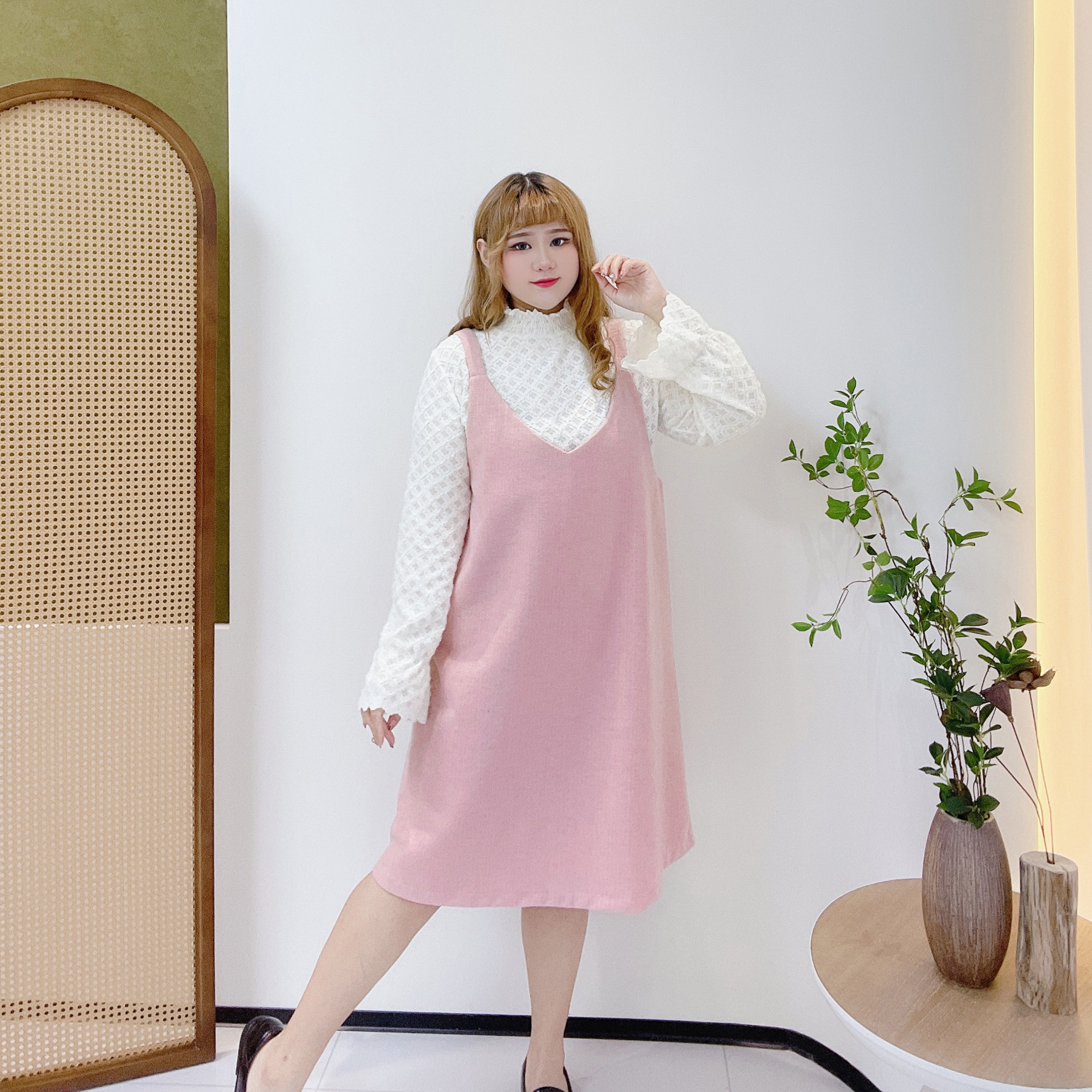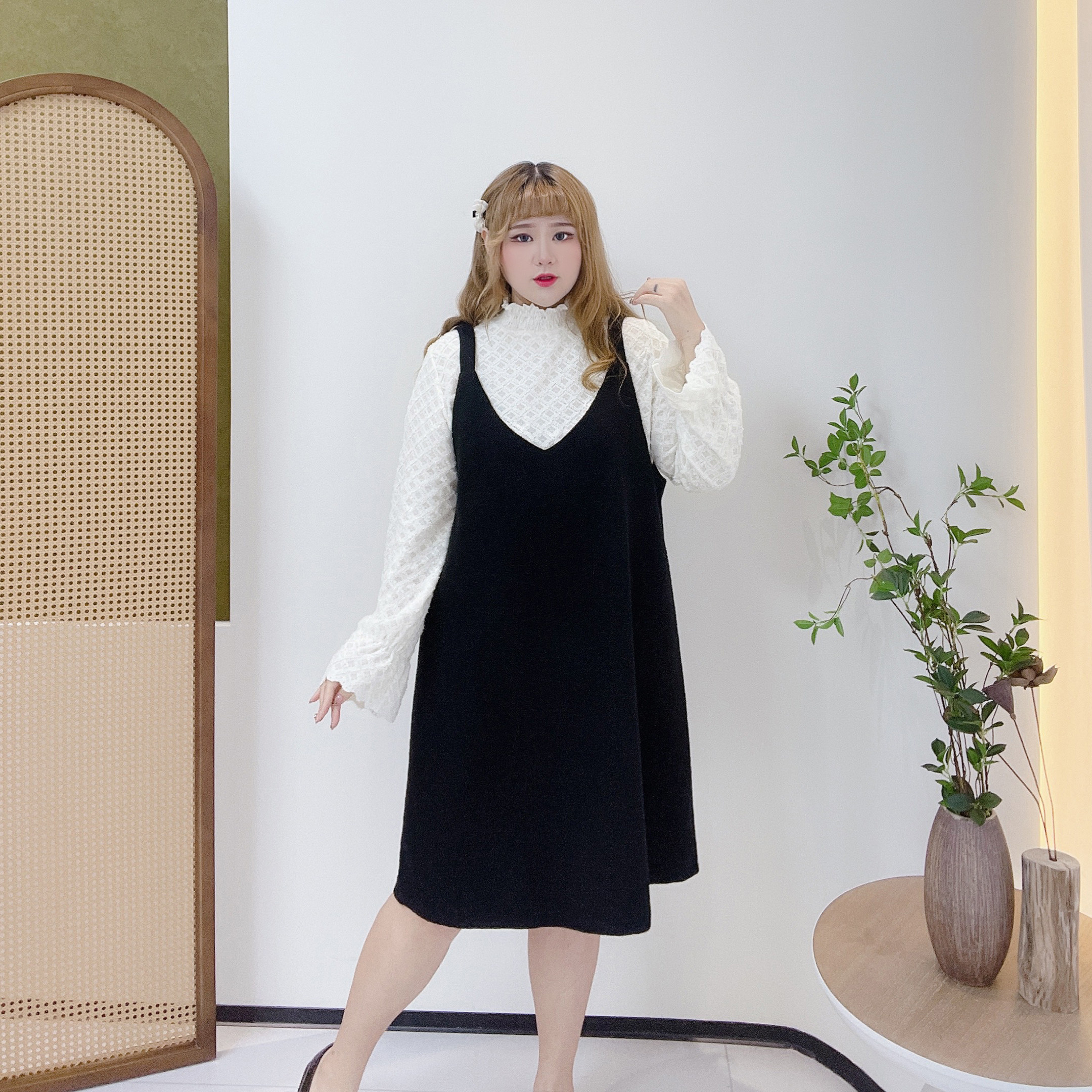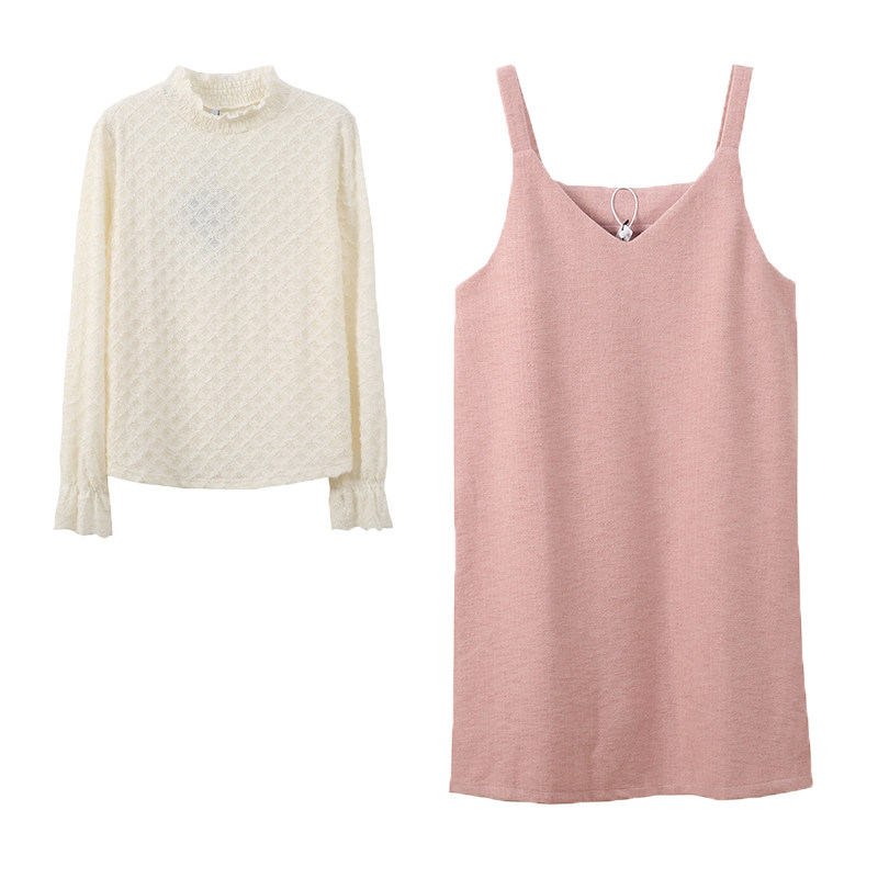 大码小香风蕾丝打底衫吊带裙套装