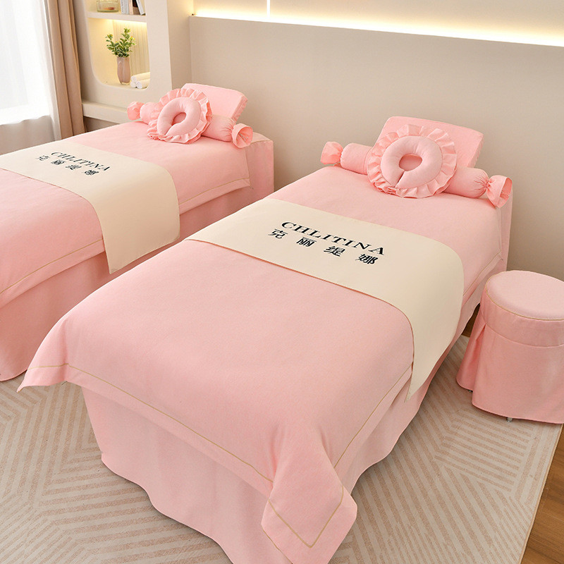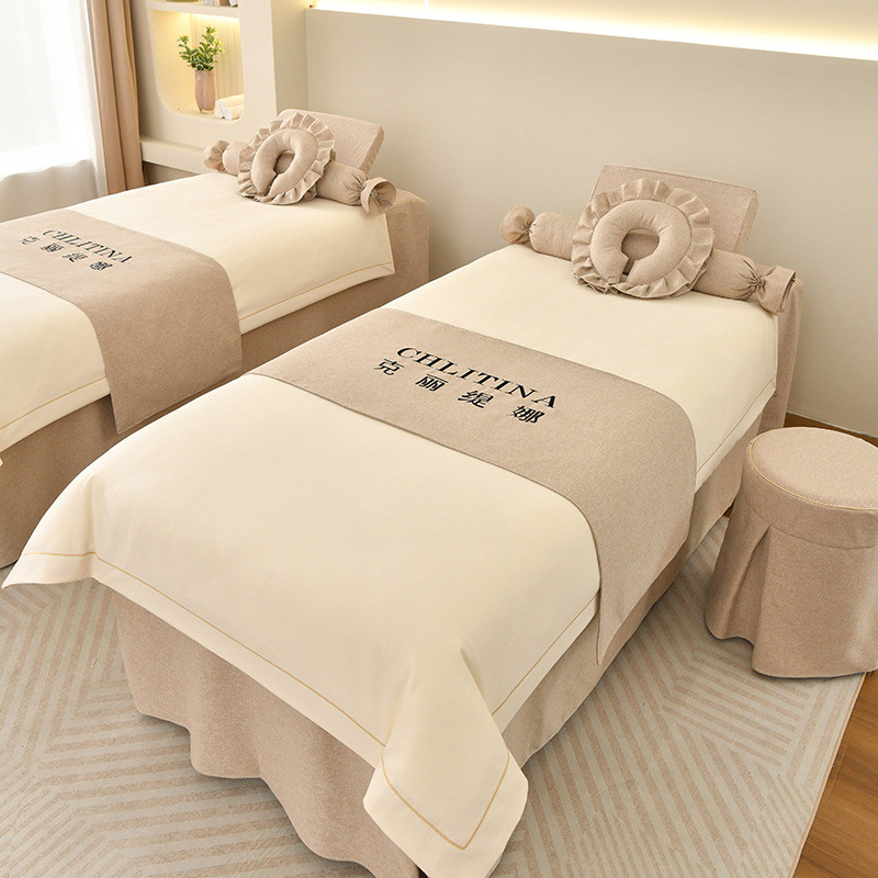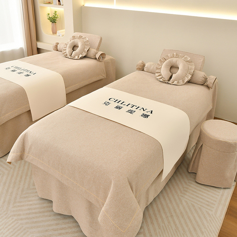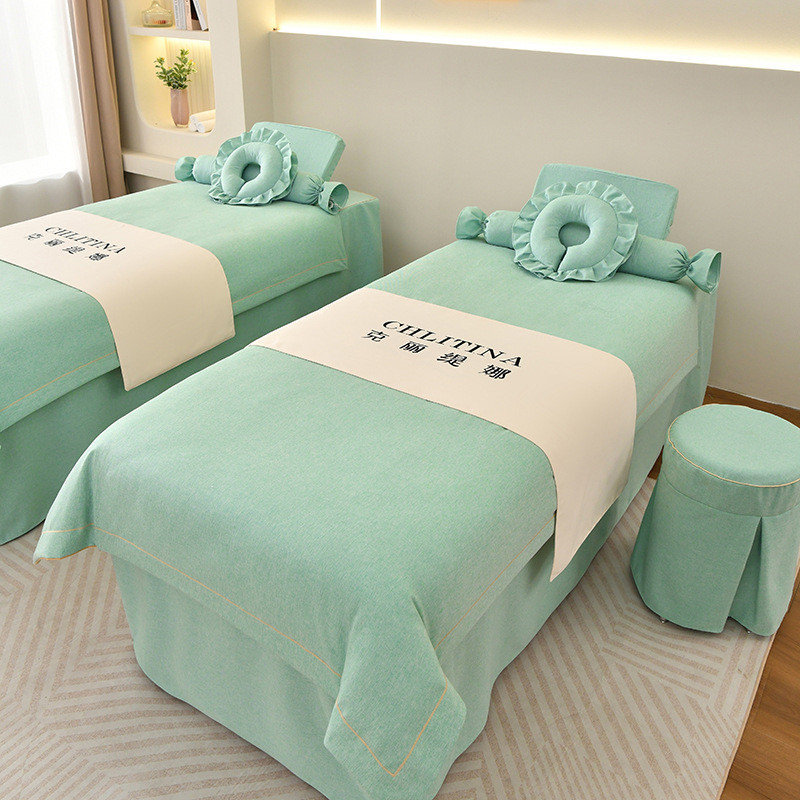 2024新款棉麻按摩床罩轻奢美容院美容床罩四件套洗头床床罩套