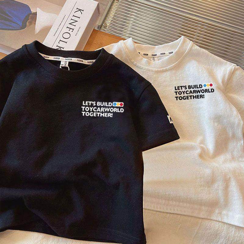 纯棉夏季男童女童短袖T恤儿童新款圆领上衣宽松夏装宝宝童装女童t