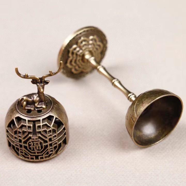 福鹿镂空香薰炉香道无粘粉祥云小香炉配件室内高脚炉办公茶室