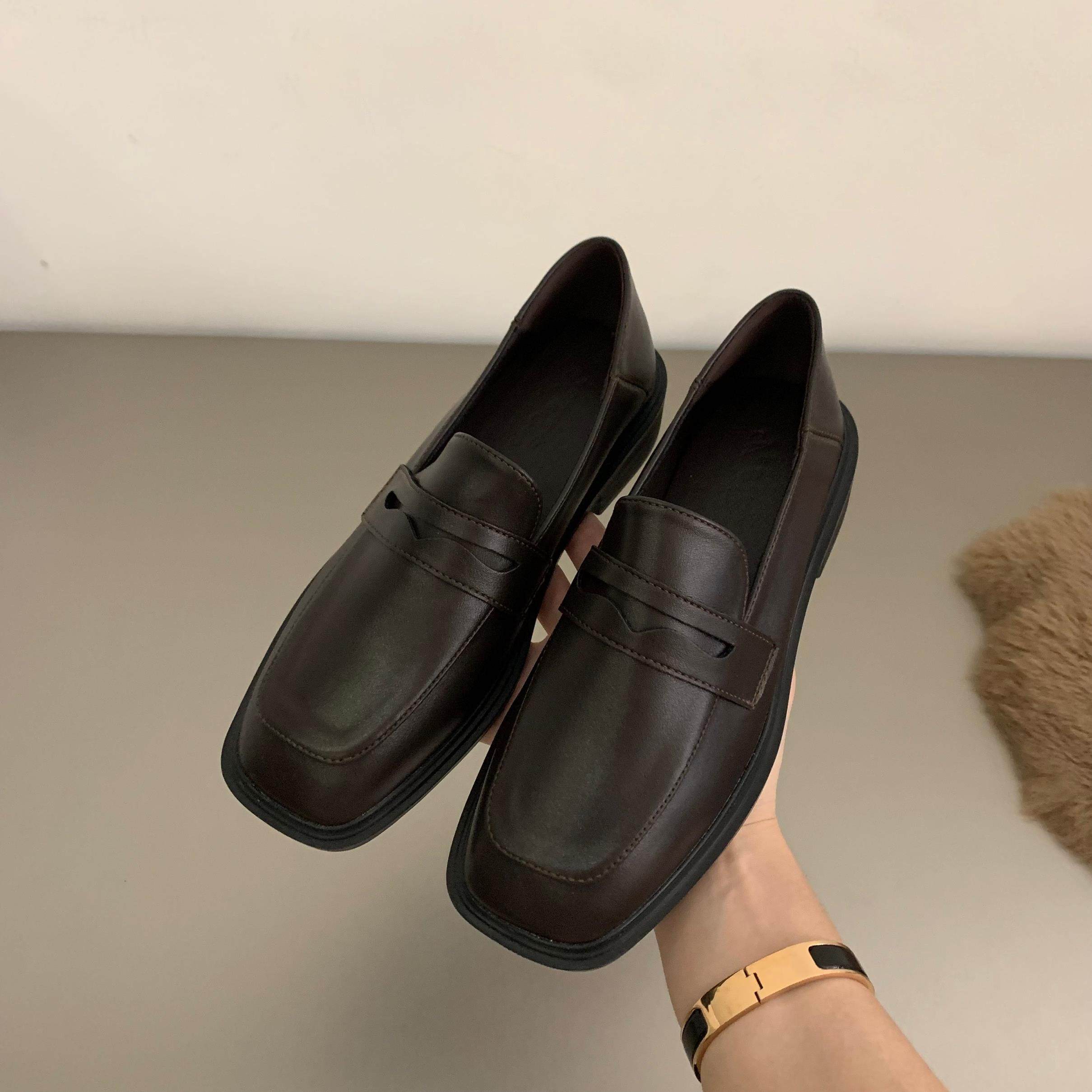 轻奢平底黑色乐福鞋单鞋女鞋子2025新款秋冬方头复古英伦风小皮鞋