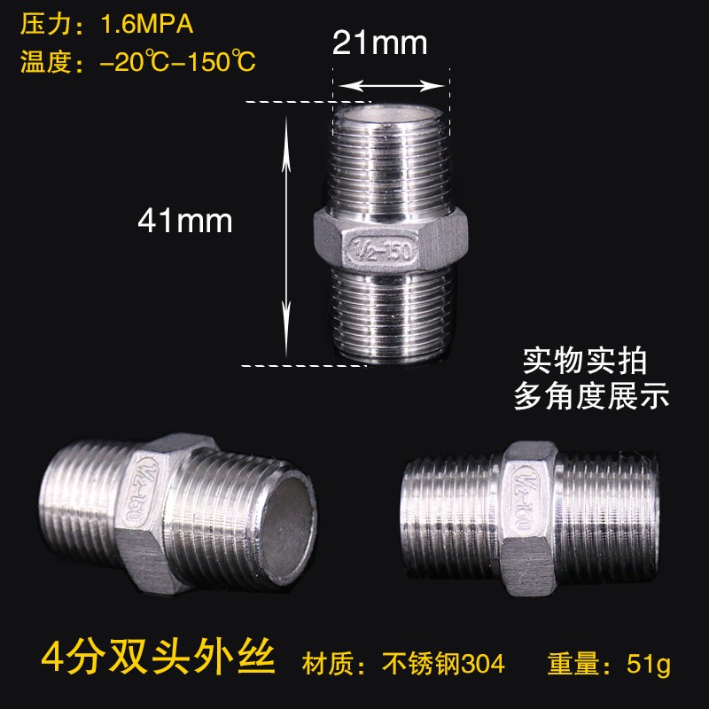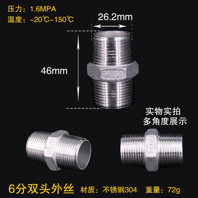 304不锈钢六角精铸对丝外丝直接直通内接 DN10 15 20 25 4分 6分