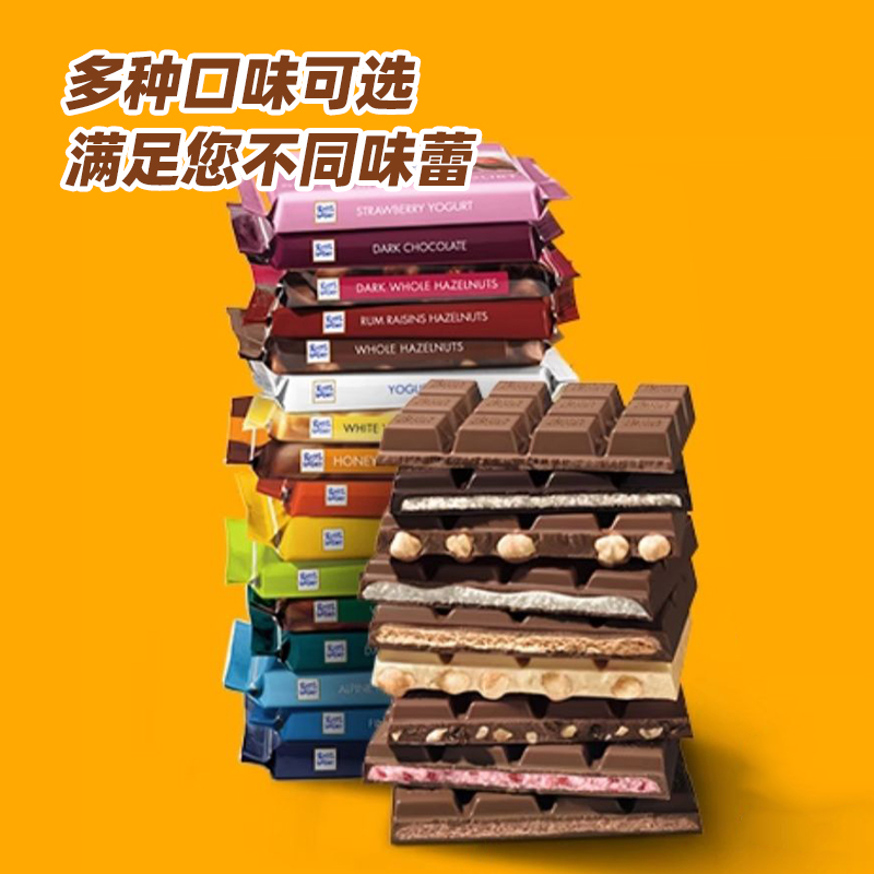 RitterSport瑞特斯波德运动牛奶夹心黑巧克力瑞特滋全榛子可可脂