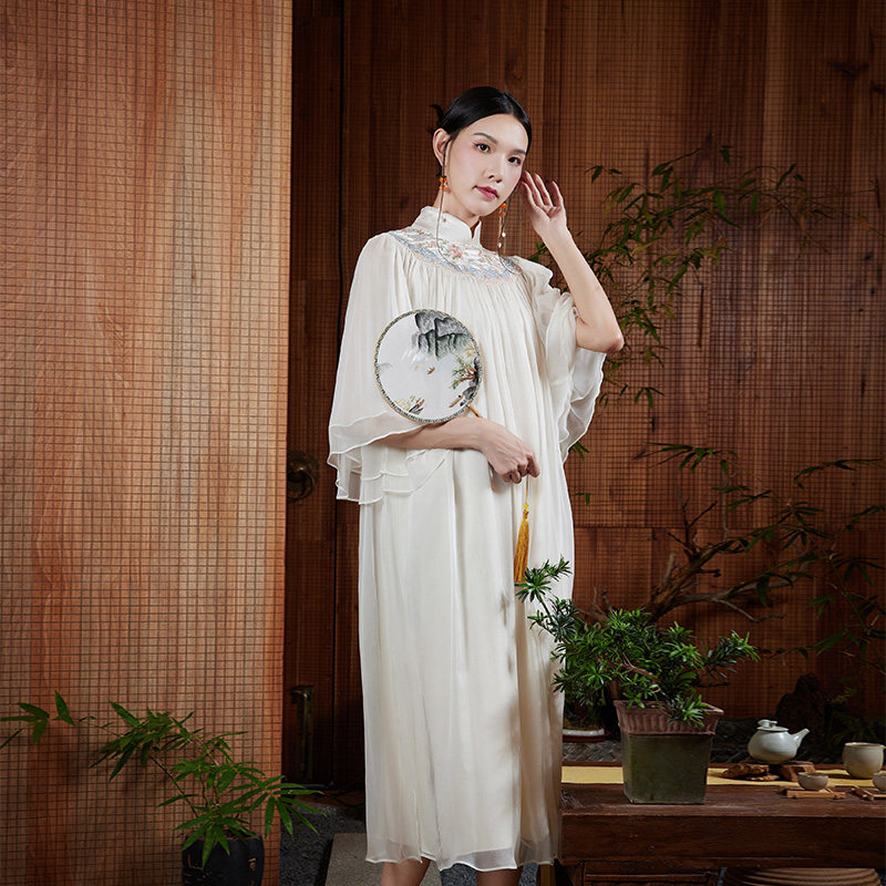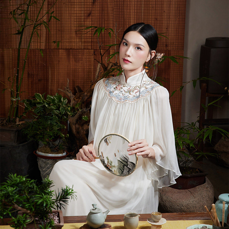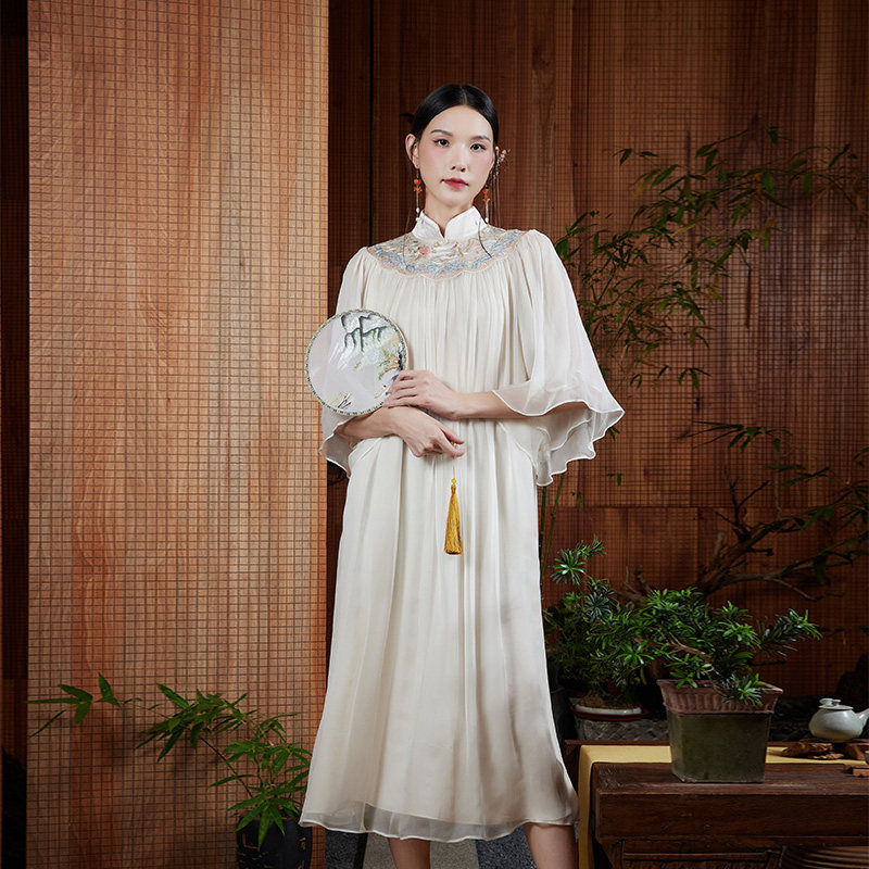 陌遇丨知云丨夏季中国风新款复古桑蚕丝云肩改良旗袍新中式连衣裙