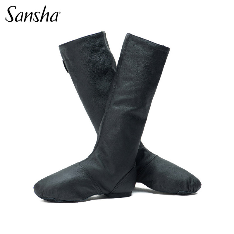Sansha三沙舞台剧剧院靴全皮面芭蕾现代舞鞋高筒靴子绑带长靴马靴