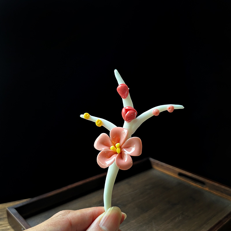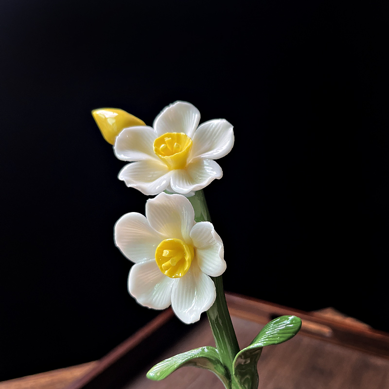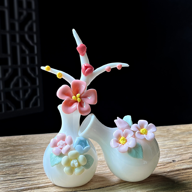 手捏陶瓷水仙花花瓶插花牡丹梅花假花装饰家居摆件桌面小瓶子花器
