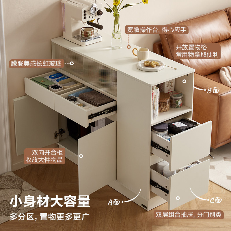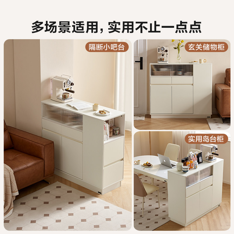 全友家居奶油风靠墙收纳储物玄关柜客厅隔断小吧台置物柜子