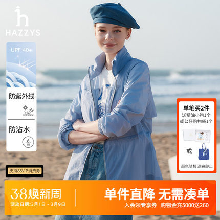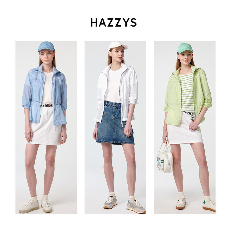 【防晒运动】Hazzys哈吉斯奥莱连帽纯色夹克衫女士2025年新款外套