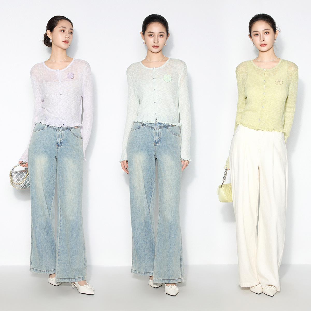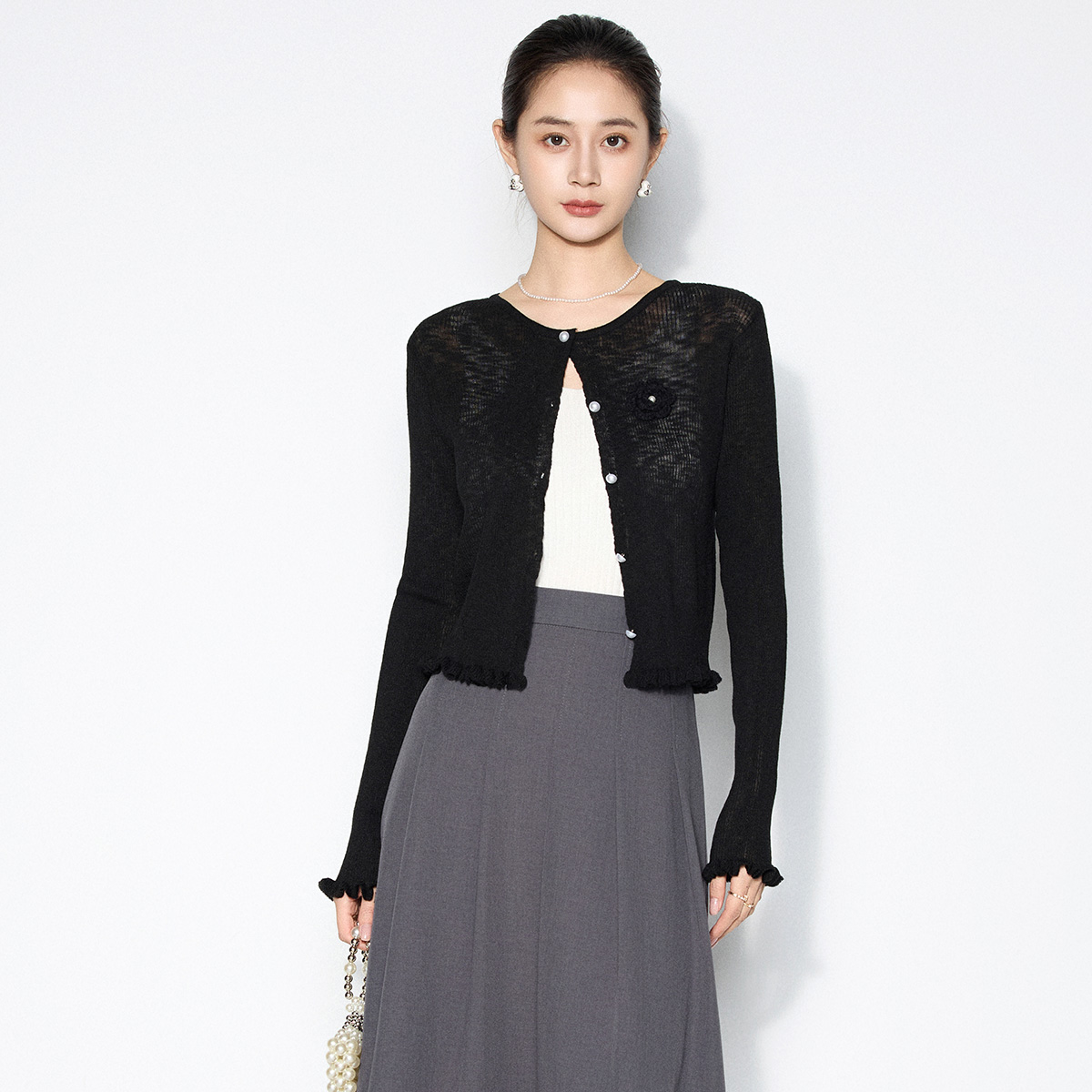 马天奴2025春夏新款纯色圆领单排扣针织开衫轻薄毛衫小衫上衣女