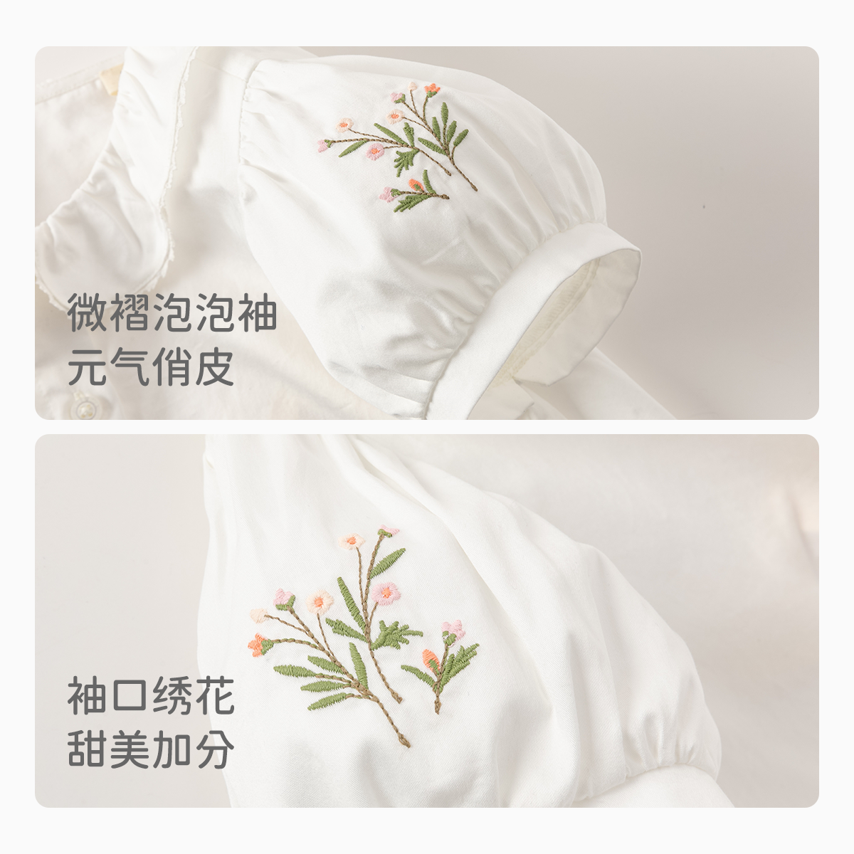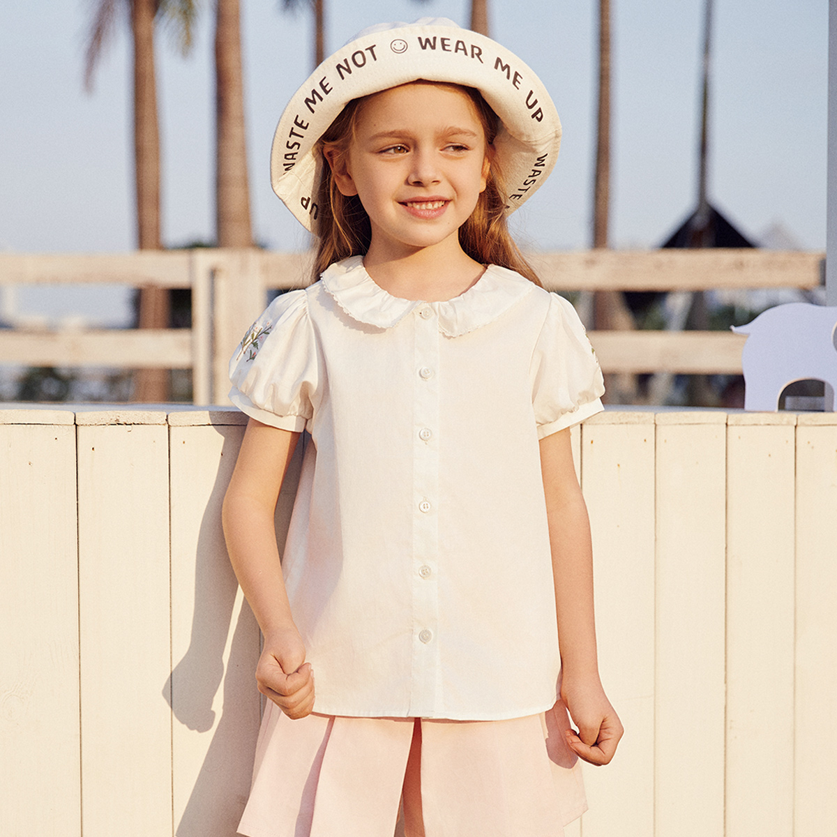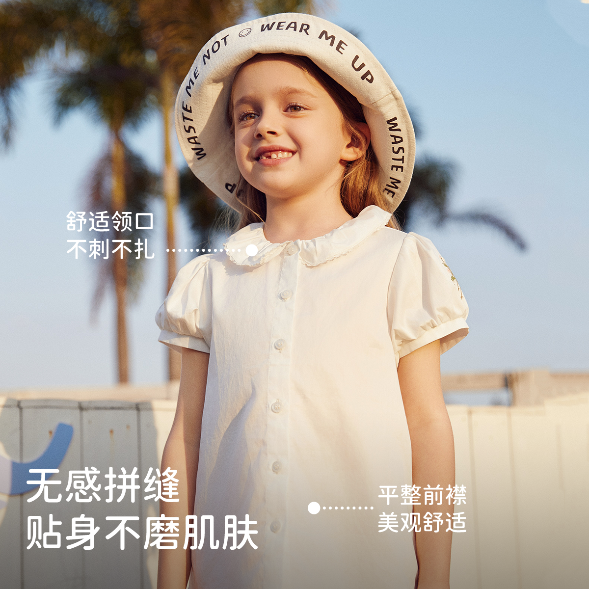 戴维贝拉女童夏款纯棉白色衬衫