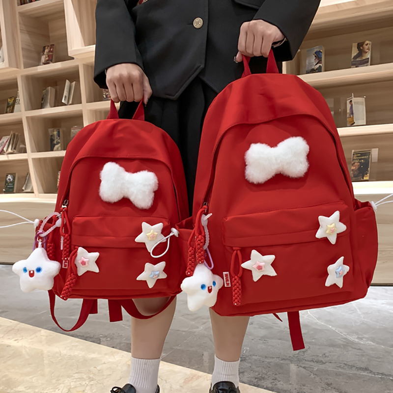 3-6年级书包女生中小学生可爱背包大学生高中学生纯色百搭双肩包