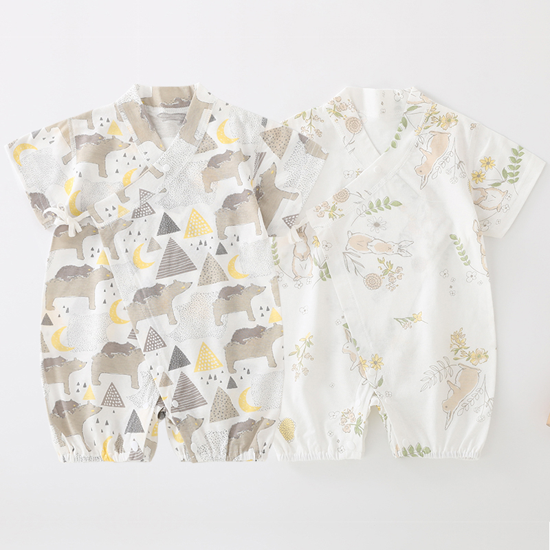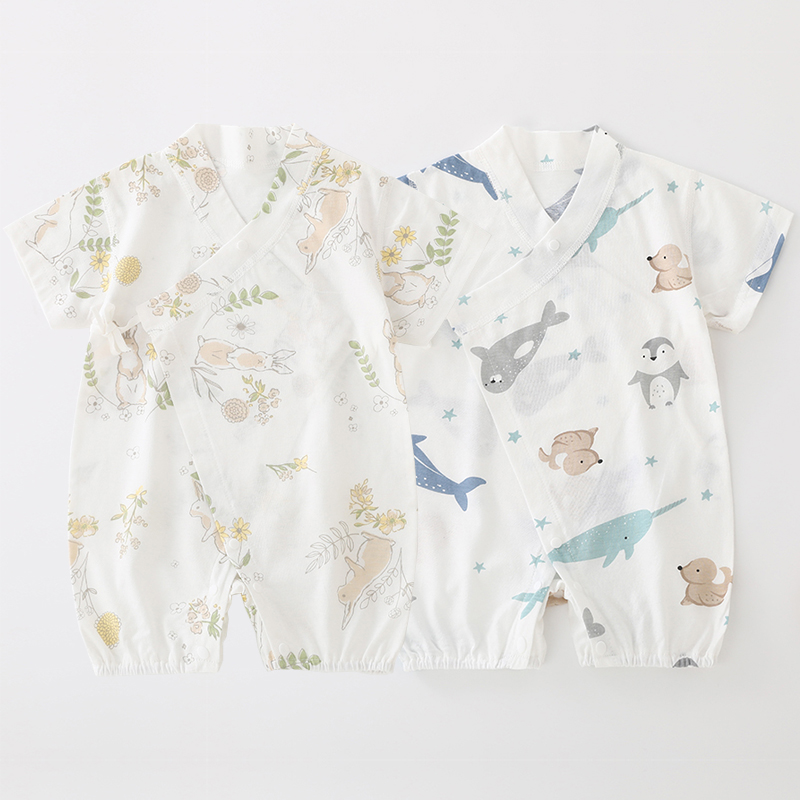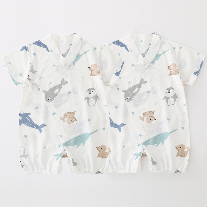 婴儿夏季纯棉连体衣宝宝夏款超薄短袖绑带哈衣儿童空调服新生爬服