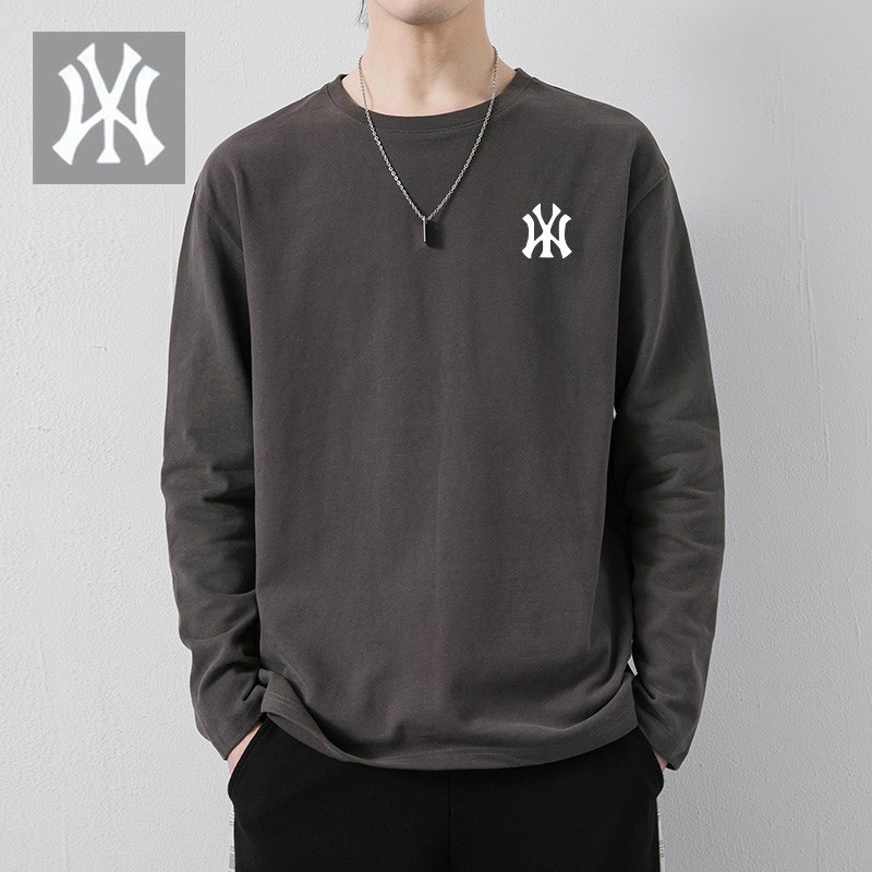 纯棉长袖t恤男士春秋季ins潮牌百搭宽松简约个性圆领体恤学生卫衣